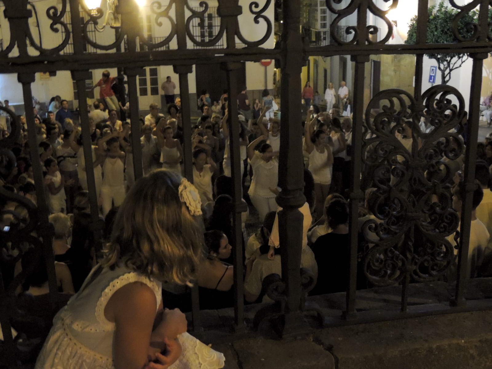 A las 23 horas, pero ya en la Plaza de Armas y posteriormente en la plaza de la Iglesia, sendos Flashmob del grupo de baile de Vanesa Orrán, que vestidas de blanco, con sus palmas, taconeos y cajas pusieron la nota flamenca a la Noche Blanca.
