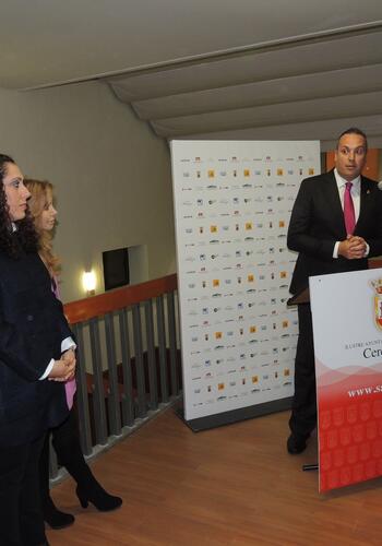 Esta inauguración se ha realizado un 2 de marzo al ser ésta la fecha de nacimiento del actor, quien falleció el 22 de junio de 2012 a los 72 años de edad. Mañana domingo se llevará a cabo una jornada de puertas abiertas, entre las 11.00 y las 13.00 horas, para que las personas que lo deseen puedan conocer el interesante legado del actor sanroqueño. Entre los asistentes se contaban numerosos familiares de Galiardo, así como amigos y dirigentes de distintos colectivos sociales sanroqueños. Además de la mayoría de los miembros de la Corporación municipal, se contó con la presencia del delegado del Gobierno de la Junta de Andalucía en Cádiz, Fernando López Gil, y del subdelegado de la Junta en el Campo de Gibraltar, Ángel Gavino. La Exposición-Legado de Juan Luis Galiardo ha sido posible gracias al trabajo de la Delegación Municipal de Cultura, que ha contado con la colaboración de los departamentos municipales de Emadesa, Multimedia, Amdel, Turismo y Juventud. También han colaborado las empresas Halcourier, Suites San Roque Club y Viajes Sotogrande Tour. El acto de esta tarde comenzó con unas breves palabras de bienvenida a cargo del alcalde, Juan Carlos Ruiz Boix. A continuación, la esposa y la hija de Galiardo, María, procedieron a descubrir la placa inaugural, tras lo cual comenzó la visita a la exposición, que se divide en cuatro partes. Así, en el vestíbulo de la planta superior se han colgado fotografías en blanco y negro de gran formato procedentes de la serie “Camerinos” del artista Sergio Parra. En ellas se reflejan distintos momentos de la preparación del actor antes de salir a escena, y destaca una con Juan Carlos Rubio, bajo la cual aparece un breve texto de homenaje a Galiardo escrito por el citado autor y director teatral, pieza clave en la realización de esta muestra. También en la planta alta se encuentra una sala presidida por la estatuilla del Goya al Mejor Actor Protagonista de 2001, que ganó Juan Luis Galiardo por su trabajo en “Adiós con el corazón”. En esta habitación también hay recuerdos personales, distintos trofeos de cine, teatro y televisión, placas de homenaje y algunas medallas y copas ligadas a sus aficiones deportivas: tenis, natación y atletismo. En cuanto al vestíbulo de la planta inferior, se ha dispuesto un ordenador con pantalla táctil para que los visitantes puedan acceder a varios vídeos protagonizados por Galiardo. Además, en cinco vitrinas se disponen objetos de todo tipo: guiones teatrales marcados por el actor, libros, objetos de atrezzo, recortes de prensa, un llavero que le regaló Francisco Rabal, hojas de citación para un rodaje, un audiolibro del Quijote... En las paredes, asimismo, se han colgado 16 carteles de películas y obras de teatro protagonizadas por el intérprete sanroqueño. Finalmente, en una sala a la que se accede desde el vestíbulo se pueden contemplar unos maniquíes con las ropas que utilizó Juan Luis Galiardo en tres de sus papeles más recordados: el del Quijote en la película sobre el hidalgo manchego; los dos para la obra teatral “El Avaro”; y el mayordomo de la serie televisiva “Gran Hotel”. En las paredes, además, se encuentra la biografía del actor, tanto en su vertiente teatral, cinematográfica y televisiva. Hay que recordar, asimismo, que en el teatro se dispone de una colección de 55 películas de la filmografía del intérprete sanroqueño. Tras la visita a los cuatro espacios expositivos, los asistentes se dirigieron a la sala del teatro, donde comenzó un homenaje presidido por una silla en medio del escenario con el rótulo “Galiardo”. En primer lugar, se pudo disfrutar de vídeo de cuatro minutos, realizado en su día por la empresa municipal Multimedia (con textos de Salvador Serrano) para la promoción de San Roque y sus barriadas, trabajo al que puso voz el actor. Seguidamente se procedió a la lectura de varios discursos. La primera en hablar fue María Elías, quien recordó que Galiardo venía a su ciudad de nacimiento “para desconectar. Le gustaba hablar con la gente, y cuando salíamos nunca sabíamos cuándo íbamos a regresar, porque se detenía a conversar con todo el mundo”, y también habló sobre momentos muy íntimos, como cuándo le contó en la playa de Campamento cómo se conocieron sus padres. Agradeció la viuda del actor la labor de los distintos componentes de la Delegación de Cultura “por su buen hacer e ilusión”, y adelantó que “el año que viene tenemos que inaugurar la segunda fase de este legado, también el día de su cumpleaños”. Mostró su agradecimiento “infinito” a Juan Carlos Rubio, al que denominó “el artífice de la exposición” por sus “ideas, gusto y sensibilidad”, y finalizó leyendo unas poéticas palabras dedicadas a Galiardo por el doctor Ventura Anciones, neurólogo que le atendió tras sufrir un ictus. A continuación, tomó la palabra Juan Gómez Macías, gestor cultural, quien destacó que “mi familia disfrutó de su amistad y confianza”, de manera que “compartió a manos llenas sus alegrías y pesares”. Recordó cuando el actor lo nombró su “hermano adoptivo”, y subrayó que “en sus años de madurez nos mostró su altura como artista y como persona”. Tras resaltar su labor como don Quijote, opinó que el papel de Harpagón en “El Avaro” de Moliere fue “su testamento artístico y moral”, convirtiéndose en “su manera de protestar ante un mundo corroído por la codicia y la corrupción”. La siguiente en tomar la palabra fue la teniente de alcalde delegada de Cultura, Dolores Marchena, quien agradeció a Galiardo “su generosidad por elegir San Roque para depositar su legado”, y recordó la primera vez que habló con el actor por teléfono y cómo le impactó su voz. Rememoró como el intérprete le mostró su enorme interés en traer “El Ávaro” al teatro sanroqueño, así como su deseo de compartirlo con los estudiantes del municipio