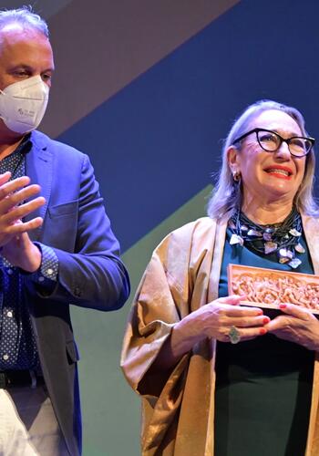 El alcalde y Ana Ruiz, junto a César Aldana, fueron los encargados de entregar el galardón a Luisa Gavasa en reconocimiento a su larga carrera en el cine, el teatro y la televisión. Gavasa dedicó a sus padres el premio, consistente en una réplica del “Éxodo” de Ortega Brú, porque dijo que ambos le habían educado para que amara la libertad y para que no dependiera de ningún hombre. Explicó que la ética y la bonhomía siempre le han guiado, y que tenía a gala nunca haber sentido vergüenza en su trabajo. Adelantó que en octubre publica un disco de canción francesa, y el alcalde le animó a que interpretara un fragmento de un tema, que hizo a capela y con mucha clase.