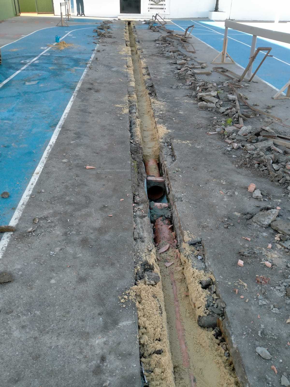 Operarios de las delegaciones de Infraestructuras y Obras y de Educación han llevado a cabo unas obras en el patio del CEIP San Bernardo, de la Estación de San Roque, aprovechando las vacaciones escolares de Navidad. Los trabajos han consistido en el cambio de las canalizaciones de pluviales para mejorar la evacuación de aguas y, sobre todo, para evitar el peligro que suponía una rejilla que sobresalía del suelo.