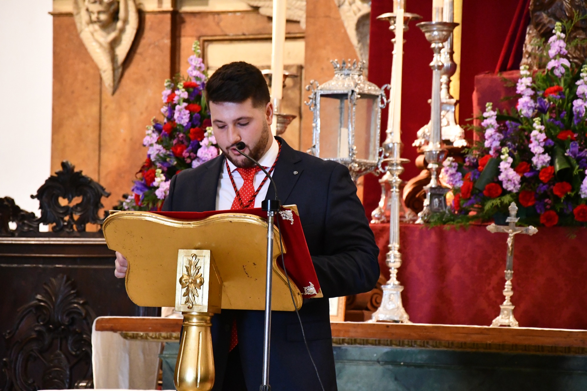 Continuó hablando de sus comienzos en el mundo cristiano y cofrade guiado por su familia ligada a la Iglesia. Recordó momentos emotivos, vividos como cuando por primera vez vivió desde dentro la Semana Santa cuando procesionó por primera vez con su Hermandad.