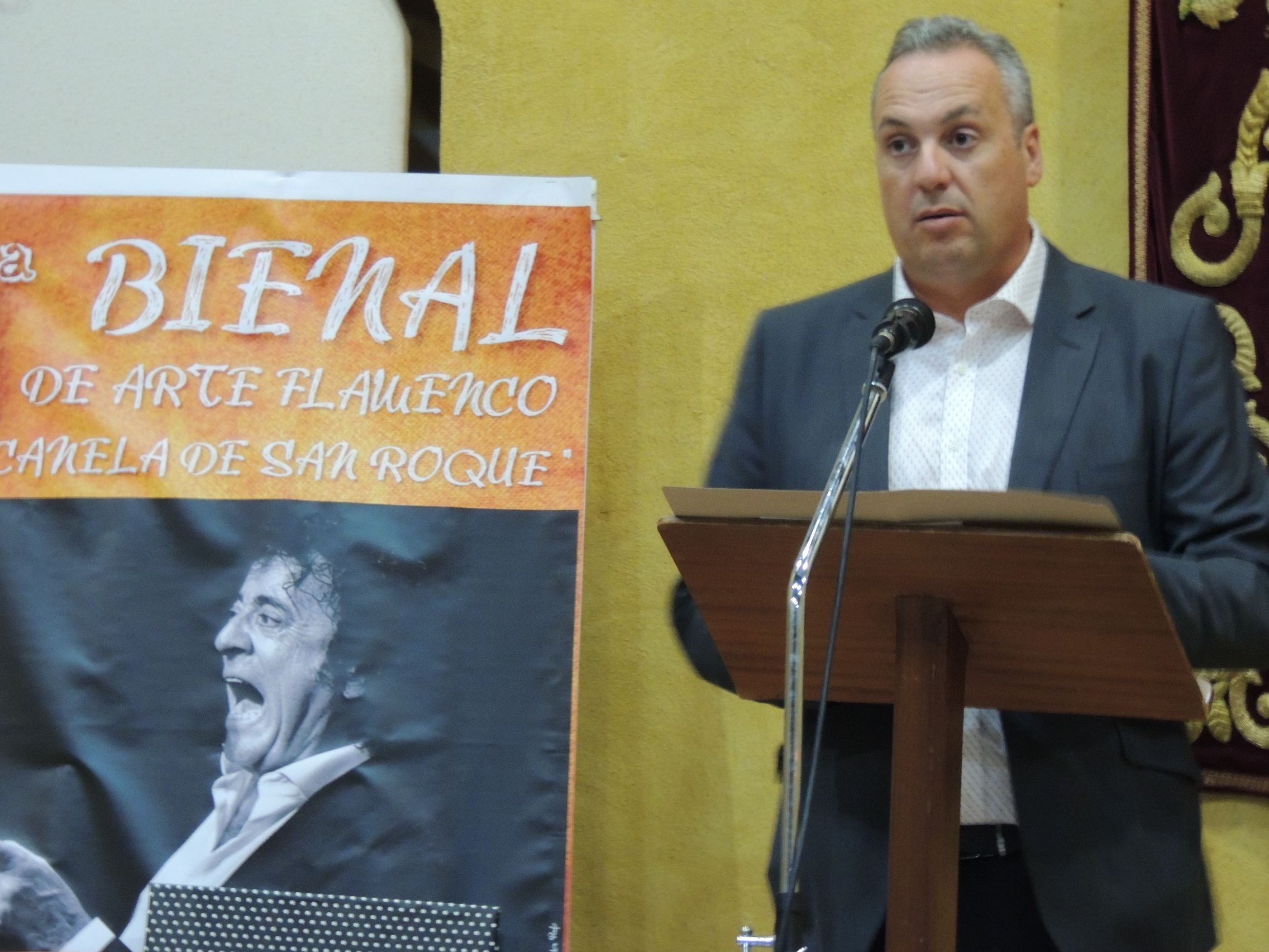 El alcalde apuntó que, antes de llegar a ese momento, tocaba disfrutar de otro artista de San Roque, un gran compositor y escritor de letras flamencas como es Juan Carlos Muñoz, que presentaba su duodécima obra aquí en la Bienal.