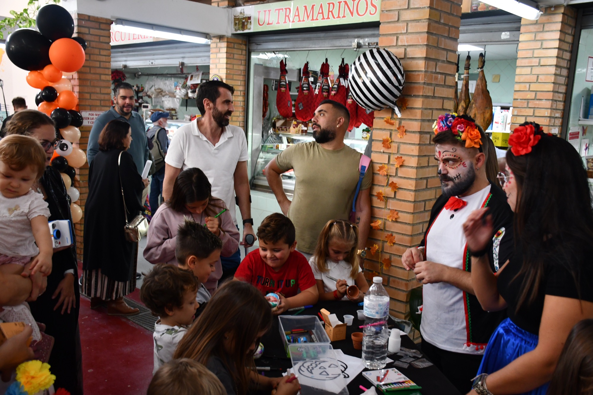 La mañana empezó con una serie de talleres en los que los pequeños podían pintar máscaras y calabazas, entre otros objetos relacionados con estas fechas, y también se les ofrecía maquillarles la cara con “looks” terroríficos. Mucha expectación generaron entre las familias los pases de baile de Soul Fusion, y los niños y niñas también pudieron disfrutar de frutos secos y caramelos que se les entregaban en los talleres, mientras que a los clientes de los locales se les dieron unas bolsas reutilizables con un mensaje impreso que anima a comprar en el mercado.