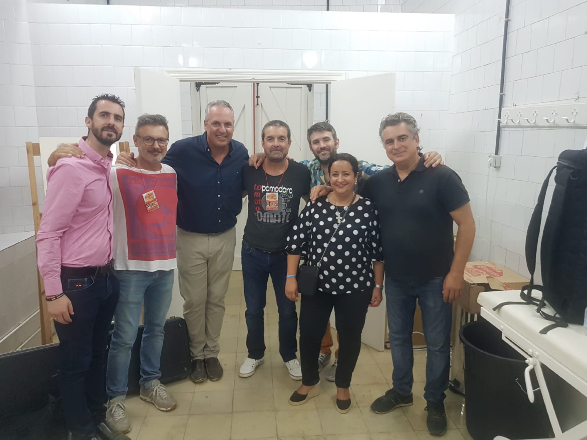 El alcalde de San Roque, Juan Carlos Ruiz Boix, y los concejales de Juventud, David Ramos, y de Fiestas y Tradiciones, María del Mar Collado, asistieron al concierto y saludaron a los artistas en el camerino.