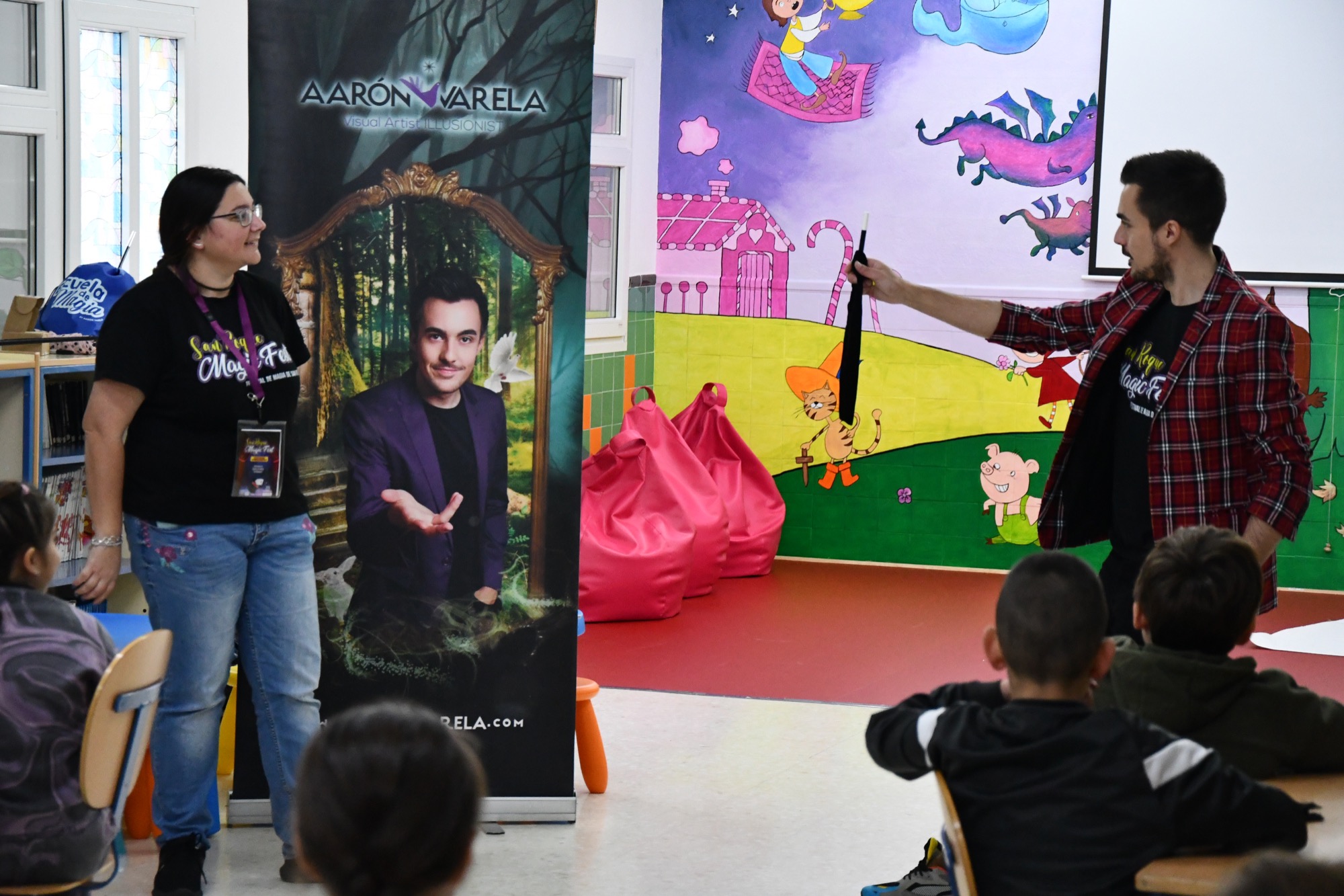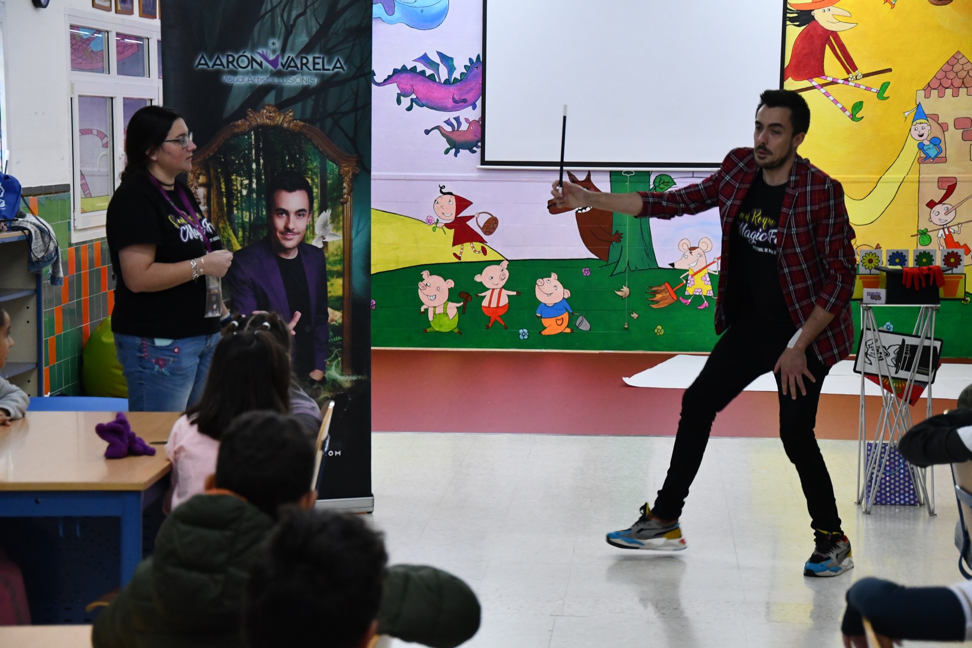 La biblioteca del CEIP Taraguilla ha acogido la sesión de la Escuela de Magia correspondiente a la jornada de hoy, martes. El ilusionista Aaron Varela, encargado de impartir estas clases tan especiales, lo hará mañana miércoles en el CEIP Santa Rita, de Campamento.