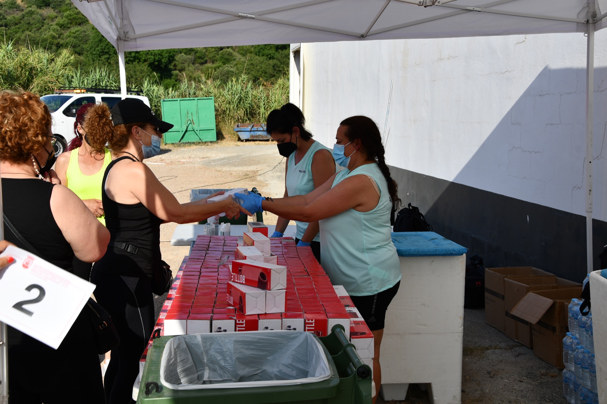 Junto a los aparcamientos del Parque de la Madrevieja se encontraba la zona de meta y catering, que fue ofrecido por el restaurante Casa Blanca, de Puente Mayorga. También estaba allí el grupo sanroqueño La Mala Hora, que amenizó la llegada de los senderistas. El alcalde subió al escenario para saludar a los participantes en esta inauguración, y pronunció un breve discurso.