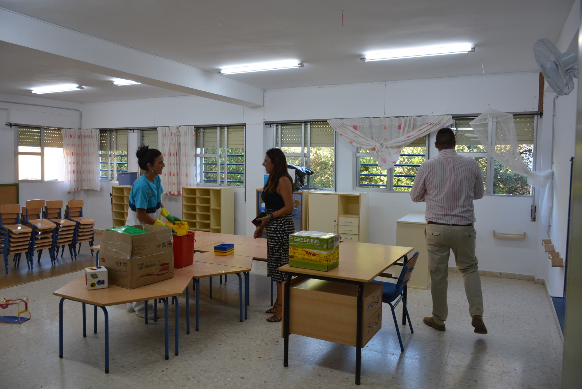 La Delegación de Educación está acometiendo durante estos días labores de adecentamiento de todos los centros educativos de Infantil y Primaria (CEIP) del municipio, entre las que se incluyen trabajos de limpieza integral. La teniente de alcalde de este departamento municipal, Belén Jiménez, está realizando visitas de inspección a todos los colegios del municipio donde se realizan estas labores hasta el próximo 1 de septiembre, fecha en la que arranca el curso escolar con la entrada del profesorado.