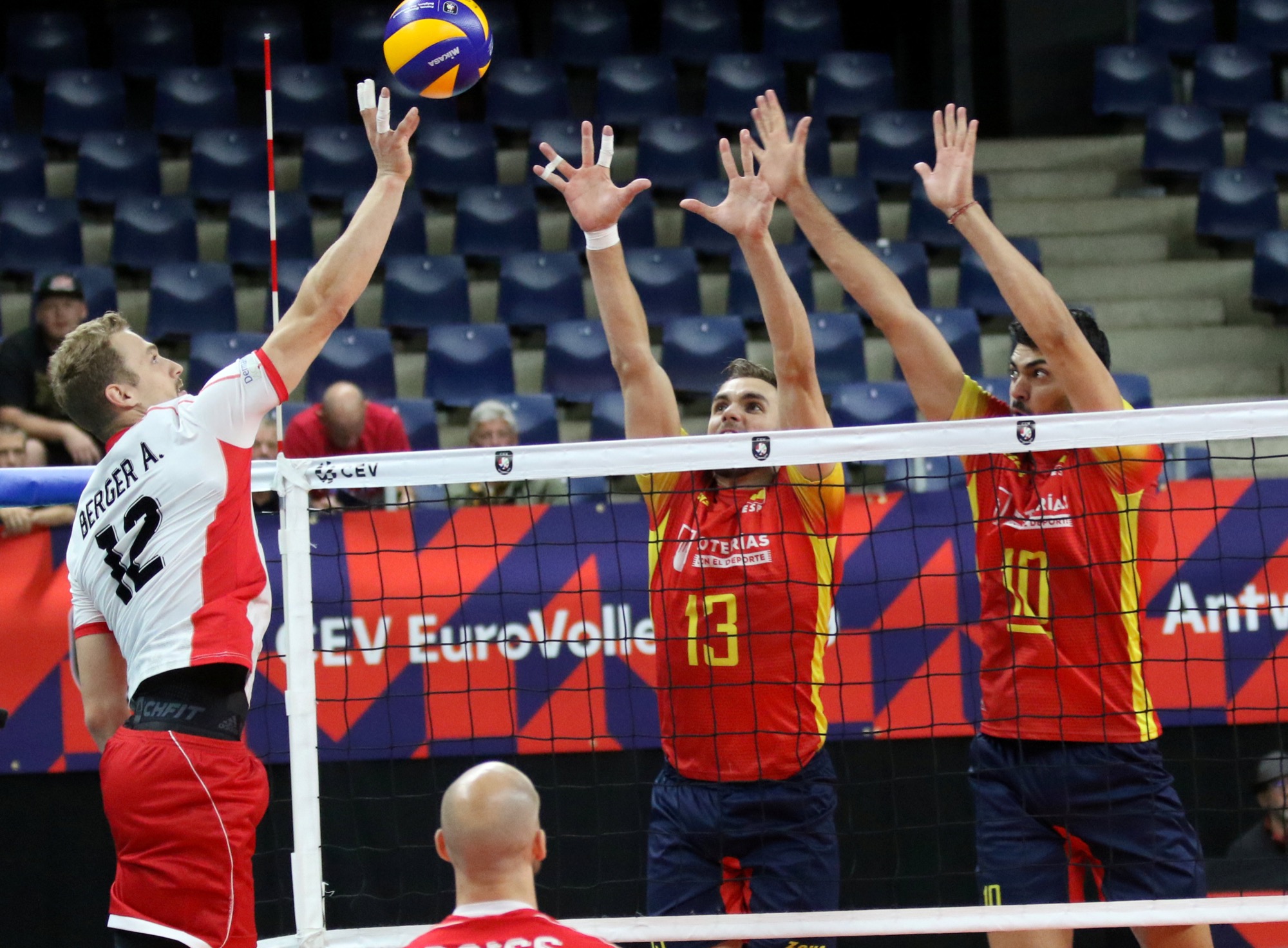 La Selección Española de Voleibol, en la que juega el opuesto sanroqueño Andrés Villena, derrotaron 3-2 a Austria este martes en la penúltima jornada de la primera fase del Europeo de Bélgica. Villena, con 24 puntos, fue el máximo anotador de los denominados “linces rojos”.