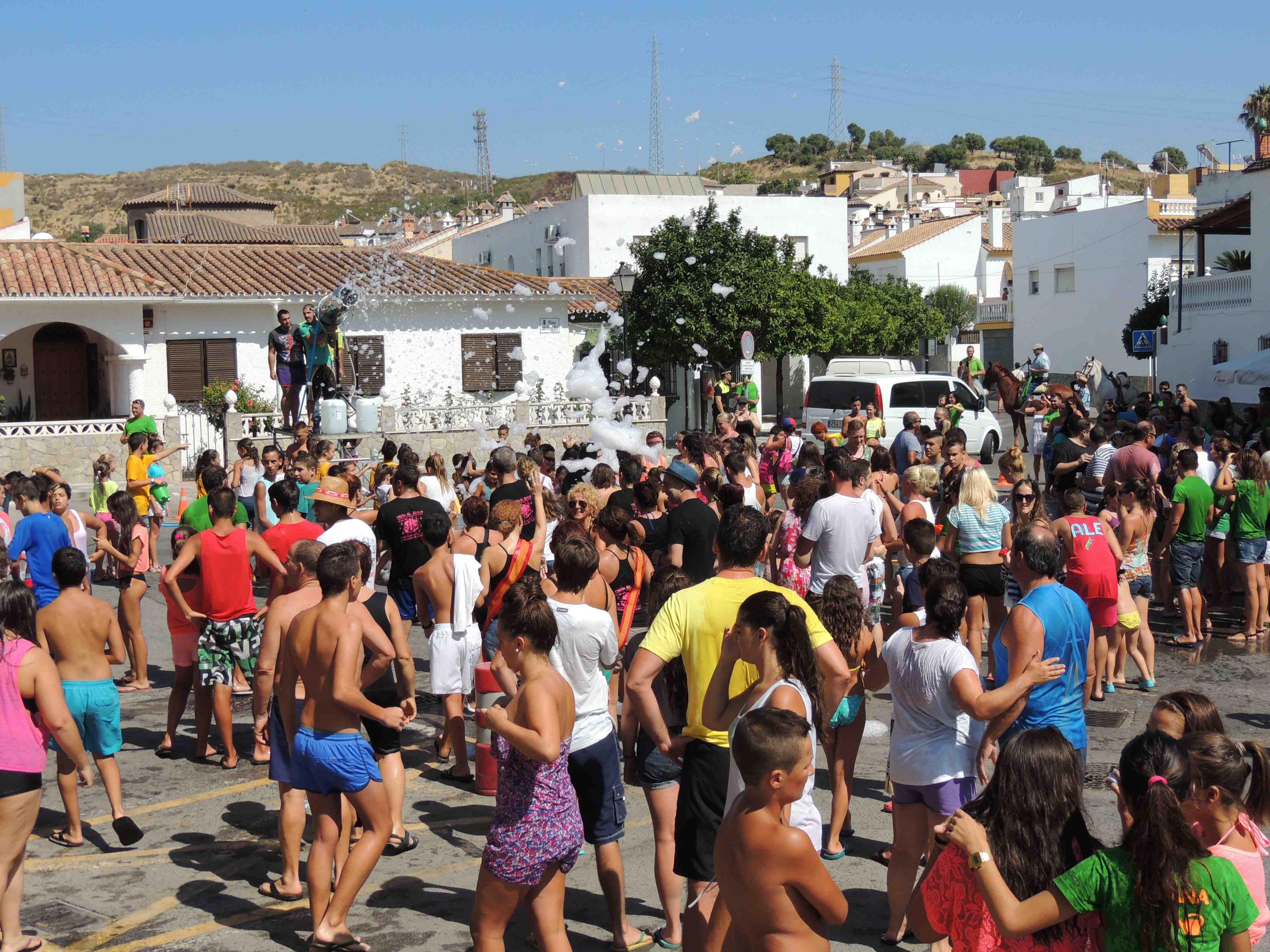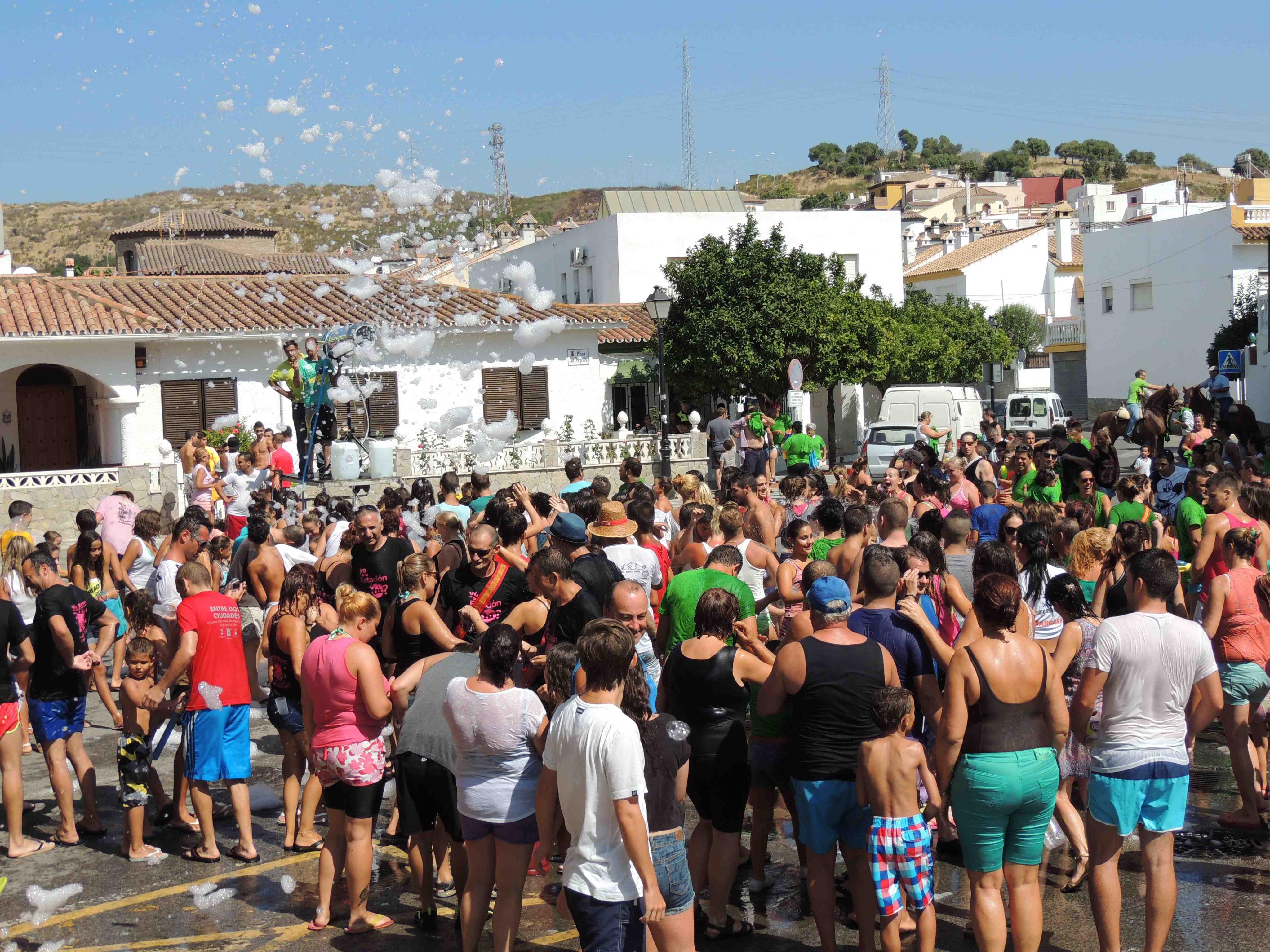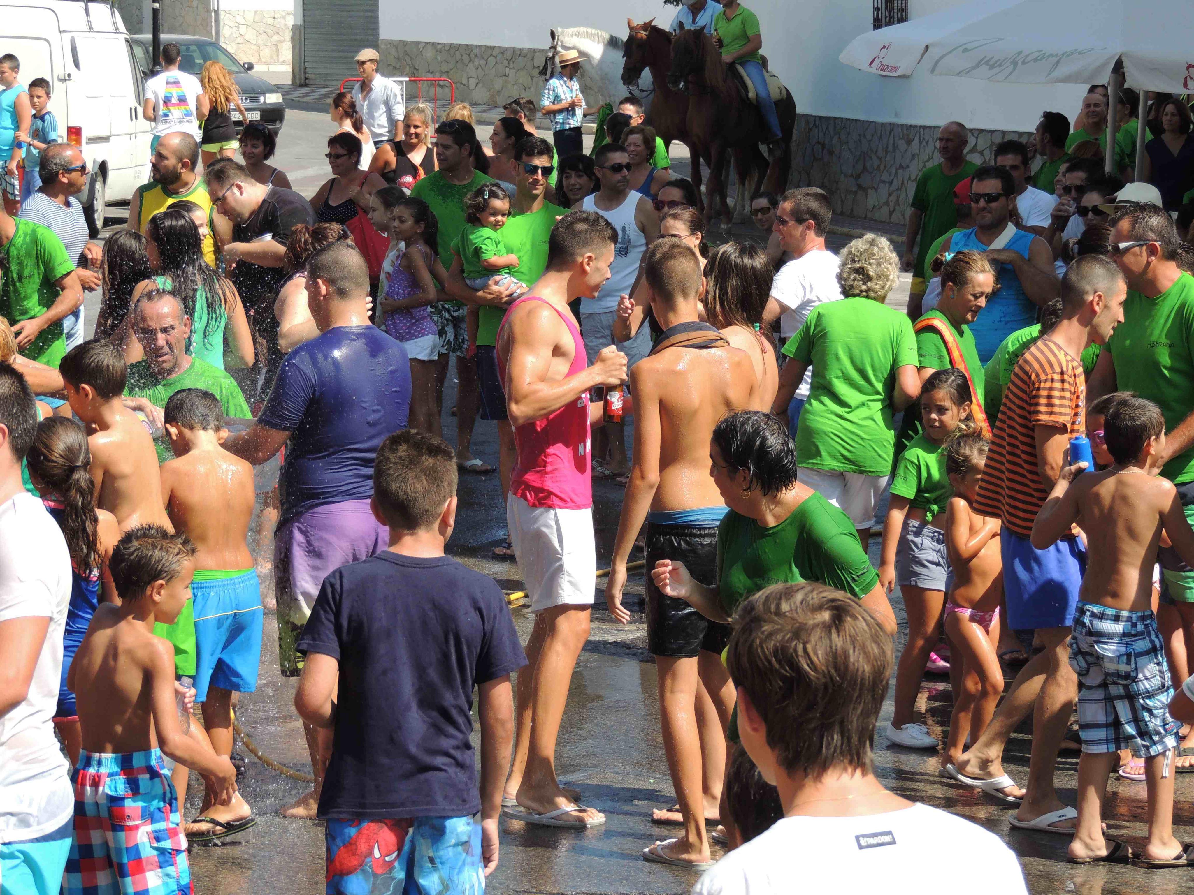 Como está siendo habitual en los últimos años, el Domingo Rociero de la Velada y Fiestas de la Estación 2014 se ha vivido principalmente en las calles y plazas de la barriada, donde numerosos vecinos han montado sus tenderetes familiares, si bien muchos otros eligieron los veladores de los establecimientos de la calle Sevilla. Al lado, en las plazas Ortega Brú y San Bernardo, tuvo lugar por la tarde la Fiesta del Agua, con divertidos baños de este líquido y de espuma que mitigaron el intenso calor.