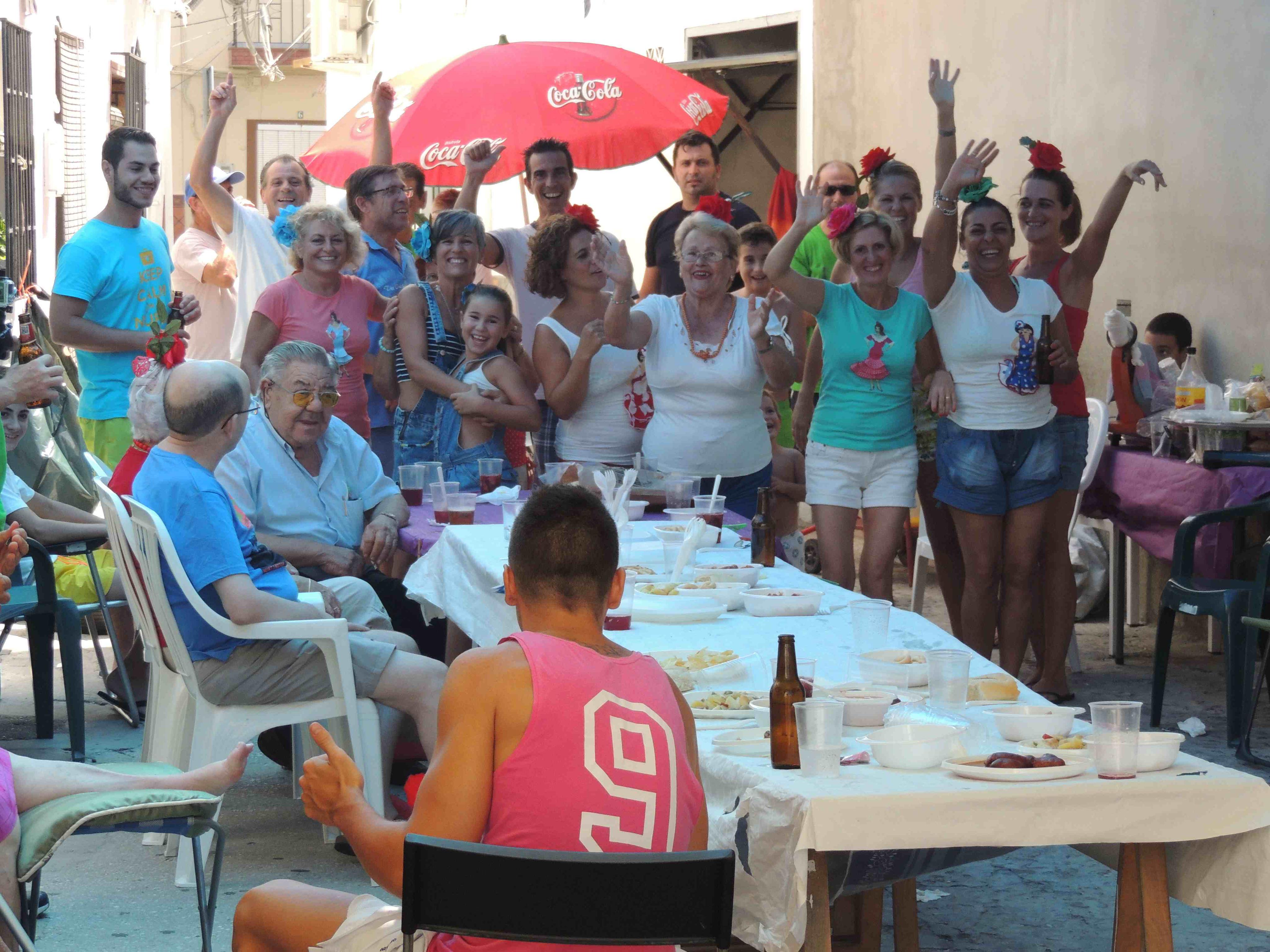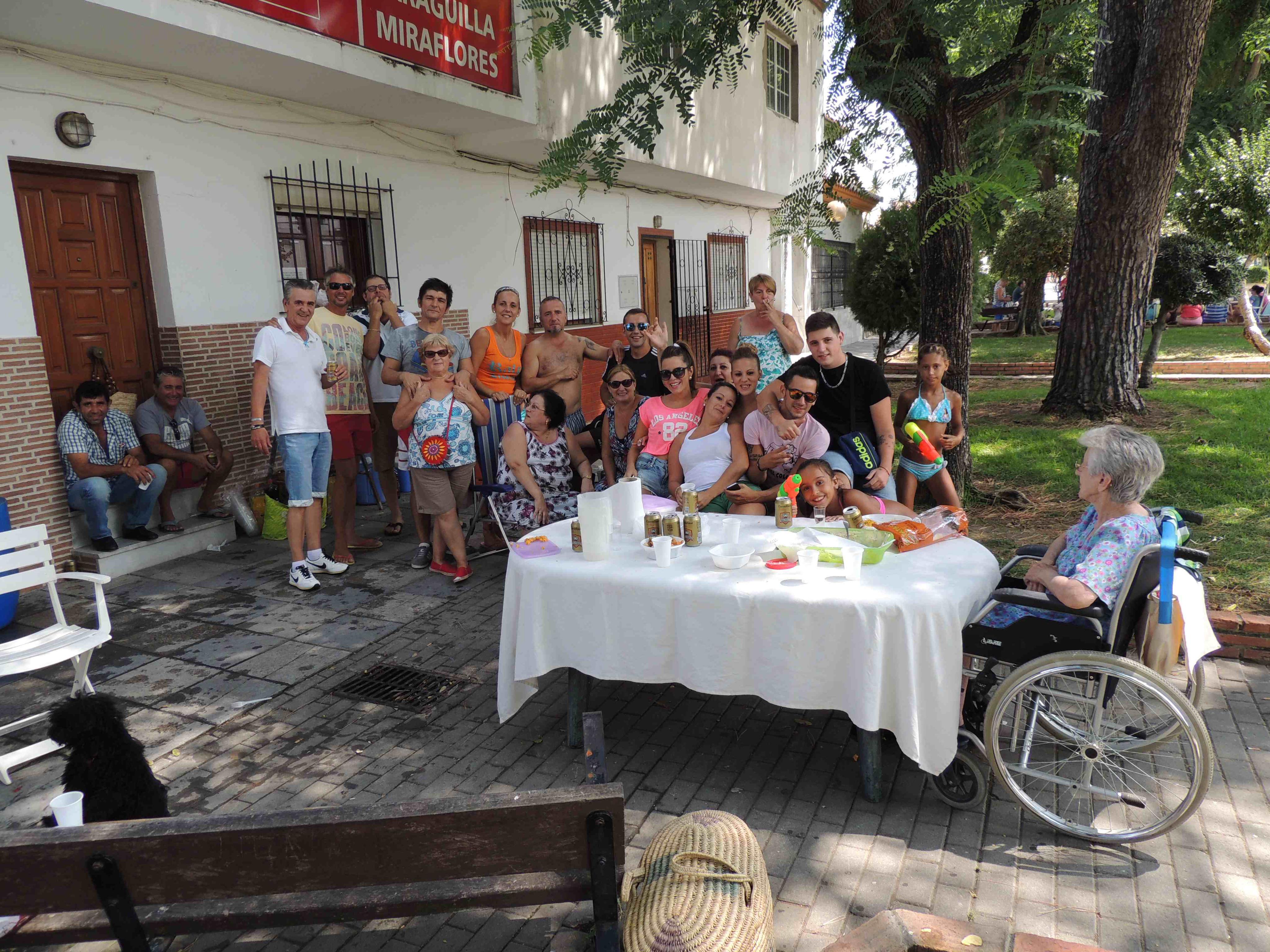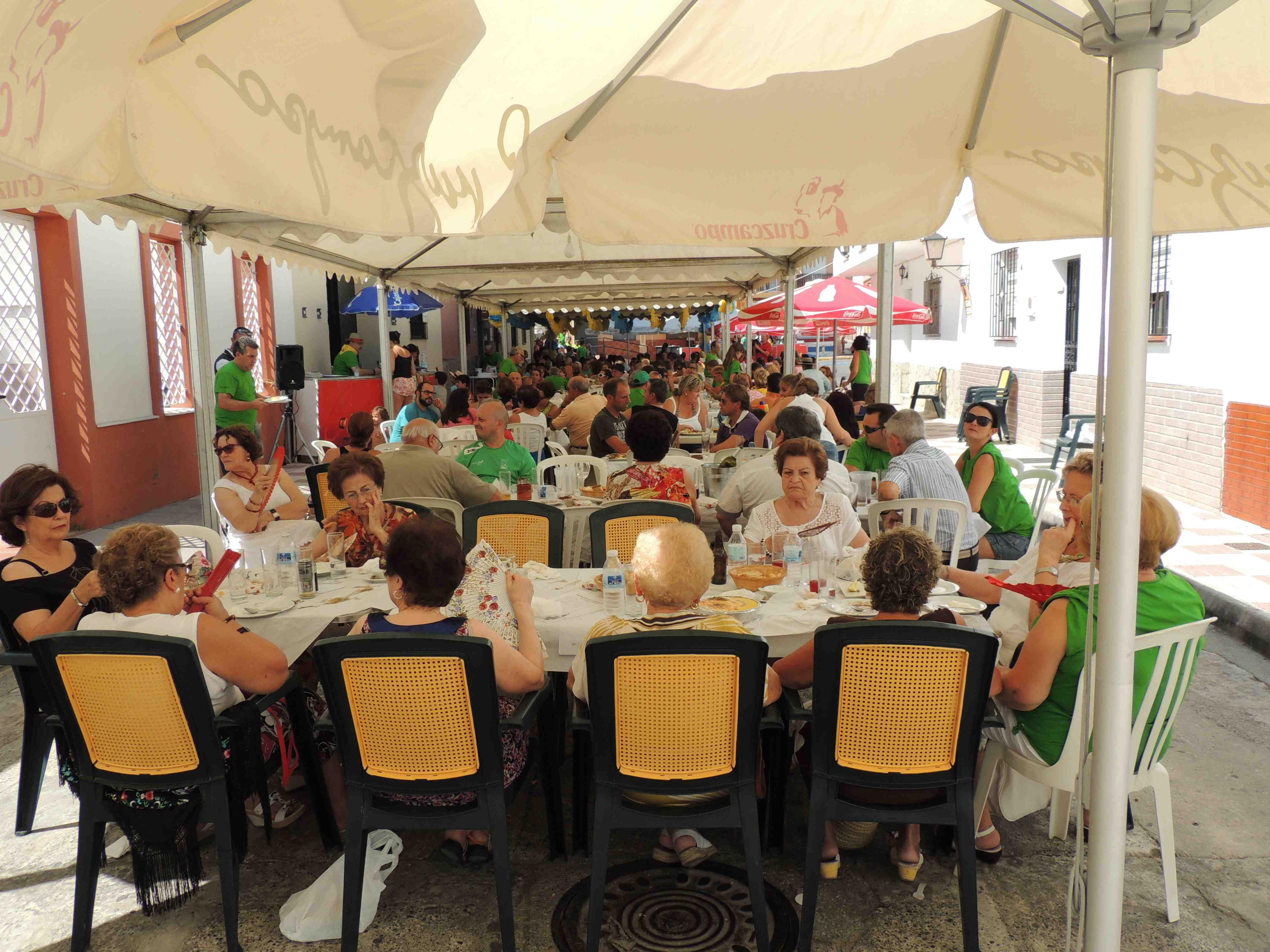 Como está siendo habitual en los últimos años, el Domingo Rociero de la Velada y Fiestas de la Estación 2014 se ha vivido principalmente en las calles y plazas de la barriada, donde numerosos vecinos han montado sus tenderetes familiares, si bien muchos otros eligieron los veladores de los establecimientos de la calle Sevilla. Al lado, en las plazas Ortega Brú y San Bernardo, tuvo lugar por la tarde la Fiesta del Agua, con divertidos baños de este líquido y de espuma que mitigaron el intenso calor.