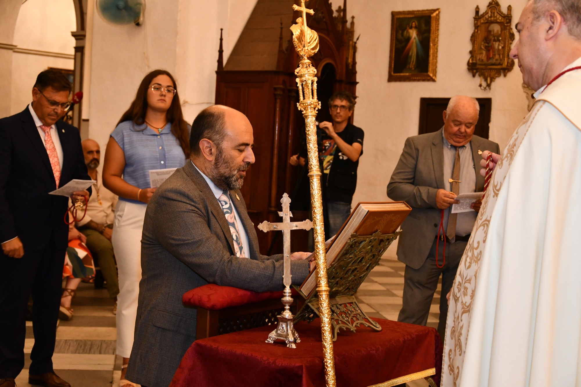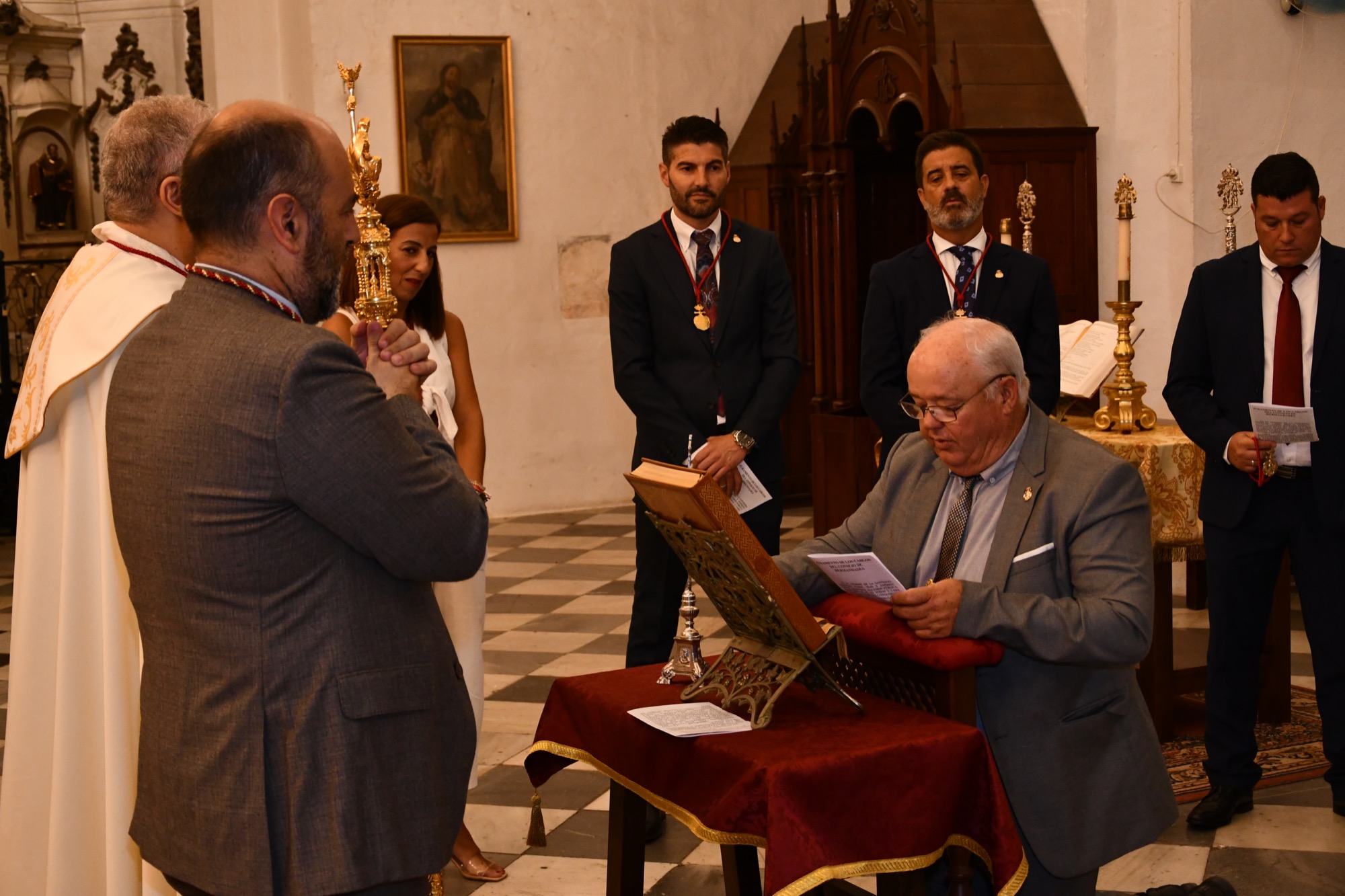 El acto estuvo presidido por el director espiritual del Consejo, el reverendo padre José Manuel Sánchez Cote, contando con la presencia de autoridades civiles, encabezada por la alcaldesa accidental María del Mar Collado Segovia, y de los hermanos mayores de las distintas hermandades y cofradías, así como por el anterior presidente del Consejo, Juan Angulo Ledesma.