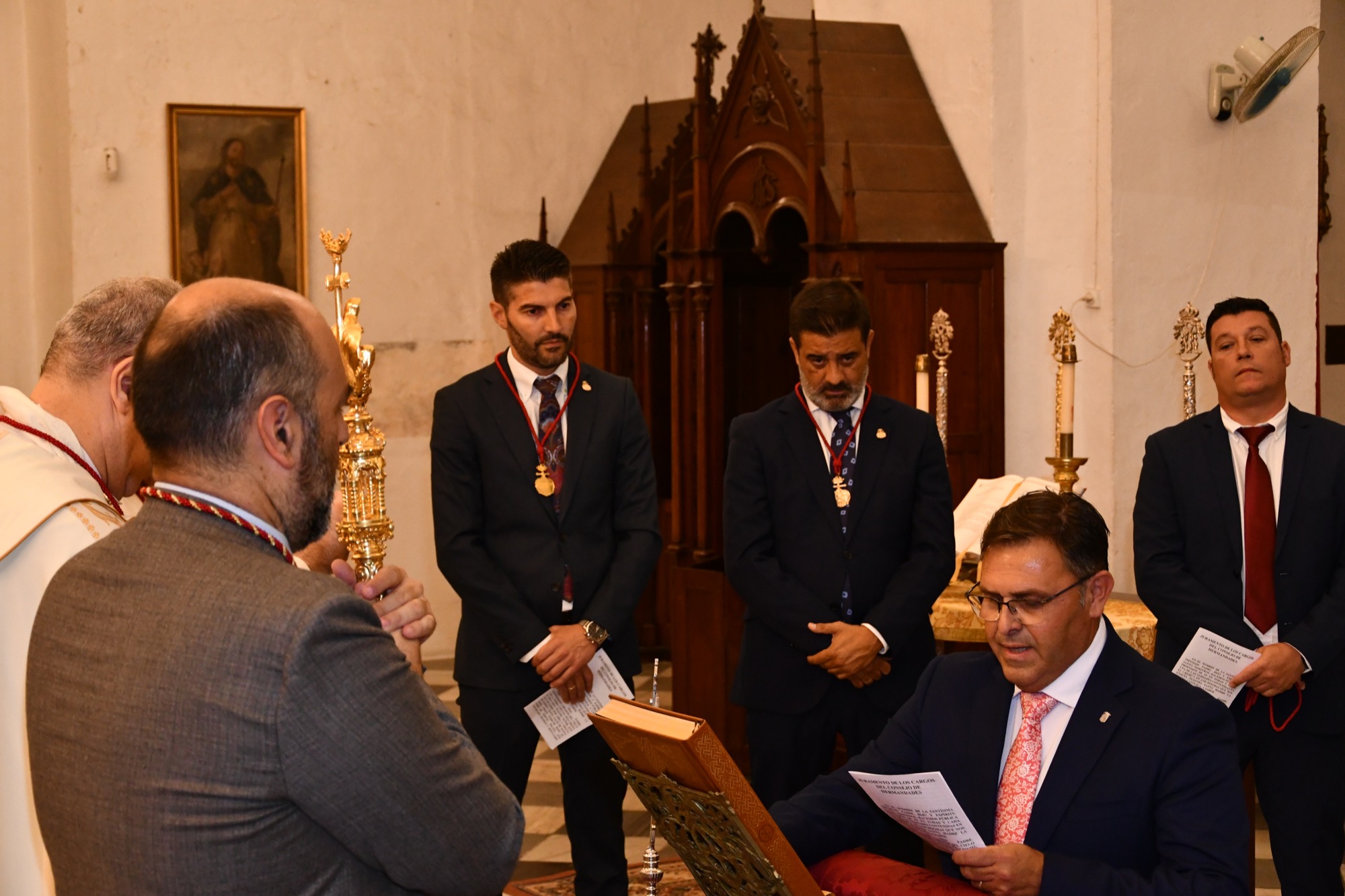 Tras la lectura del decreto de nombramiento por parte del Delegado Episcopal para las Hermandades y Cofradías, fueron jurando sus cargos cada uno de los integrantes de la Junta Permanente comenzando por el presidente José Luis Perales García.