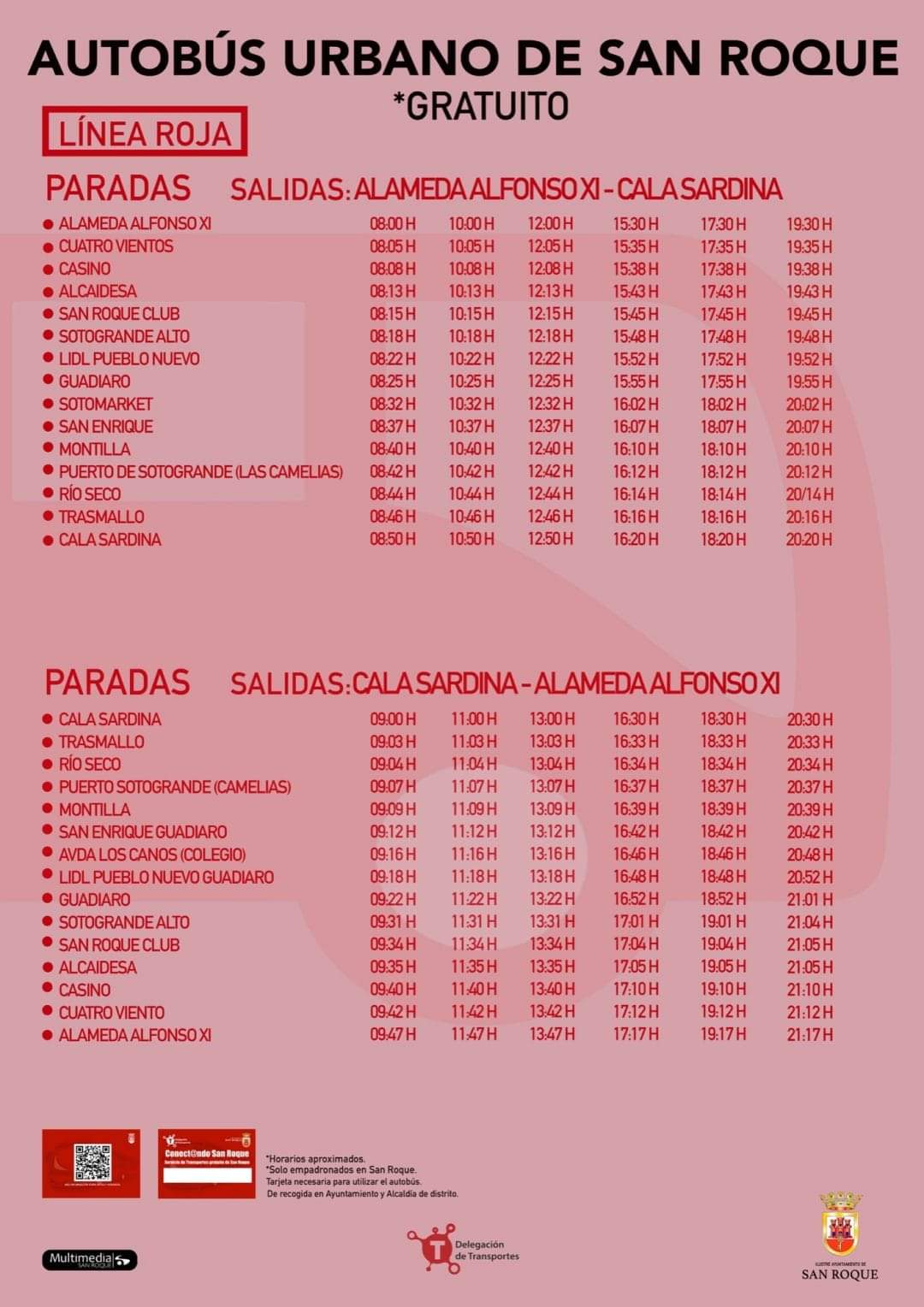 El edil ha anunciado que tanto la salida a las 15:30 horas de la Alameda Alfonso XI, como la vuelta a las 20:30 horas desde Torreguadiaro tendrá doble línea de autobús, es decir, serán dos los autobuses que la cubran, para duplicar la capacidad de usuarios.
