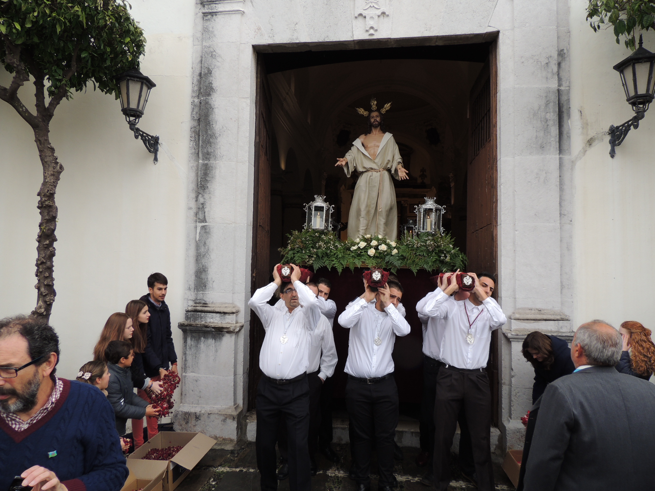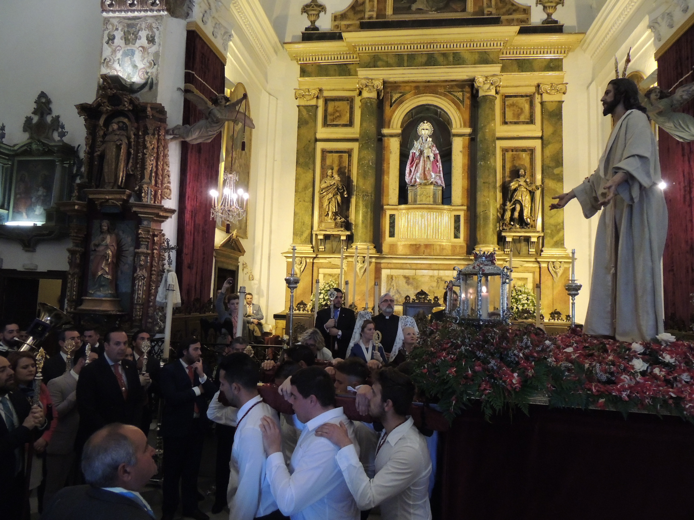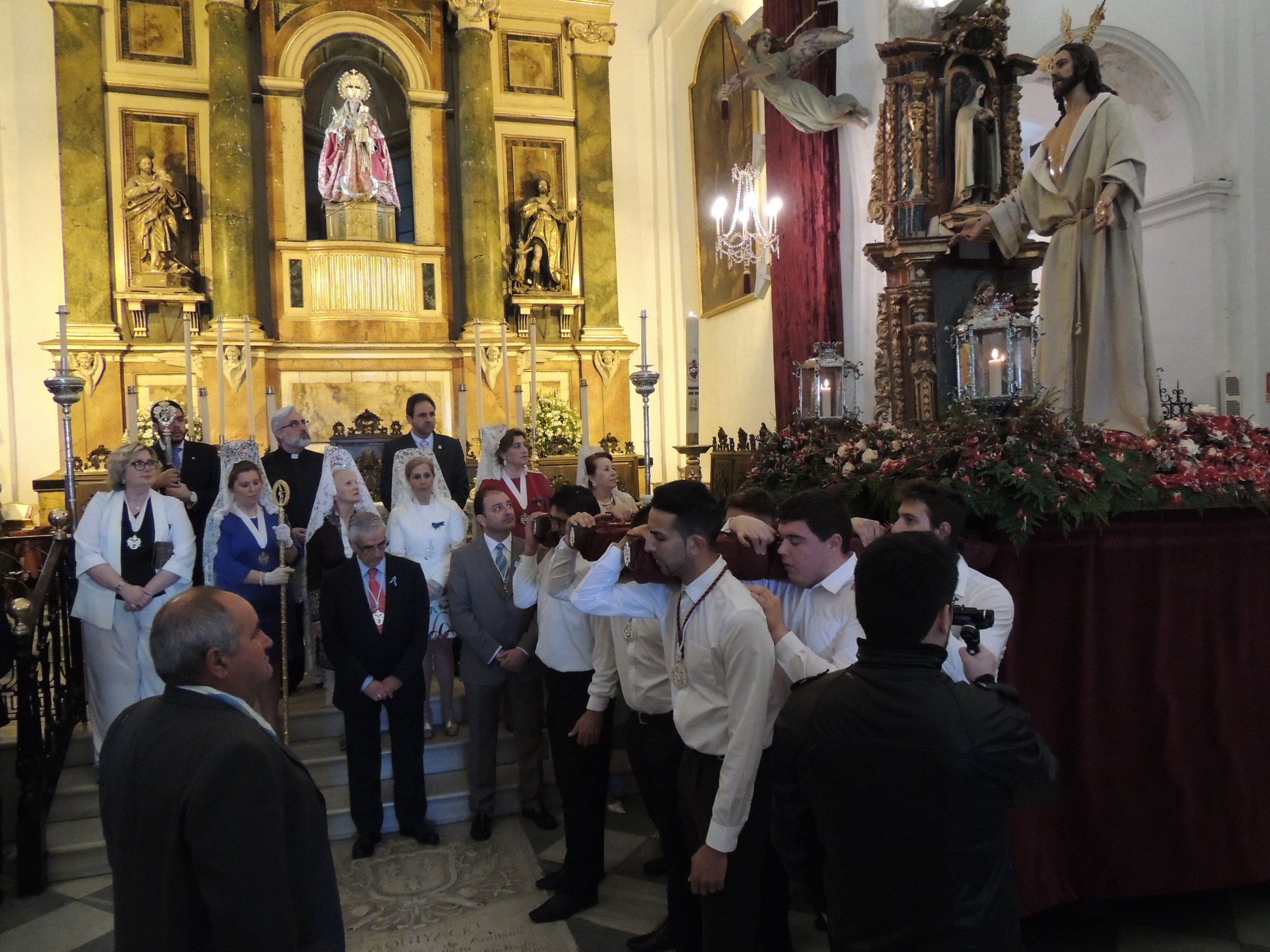 Numerosos fieles se congregaron en la iglesia para asistir a esta procesión, que organiza la Asociación Parroquial Nuestro Señor Jesucristo Resucitado. También participaron los miembros del Consejo Local de Hermandades y Cofradías, con Juan Angulo a la cabeza, así como varios concejales, entre los que se contaba el alcalde, Juan Carlos Ruiz Boix.