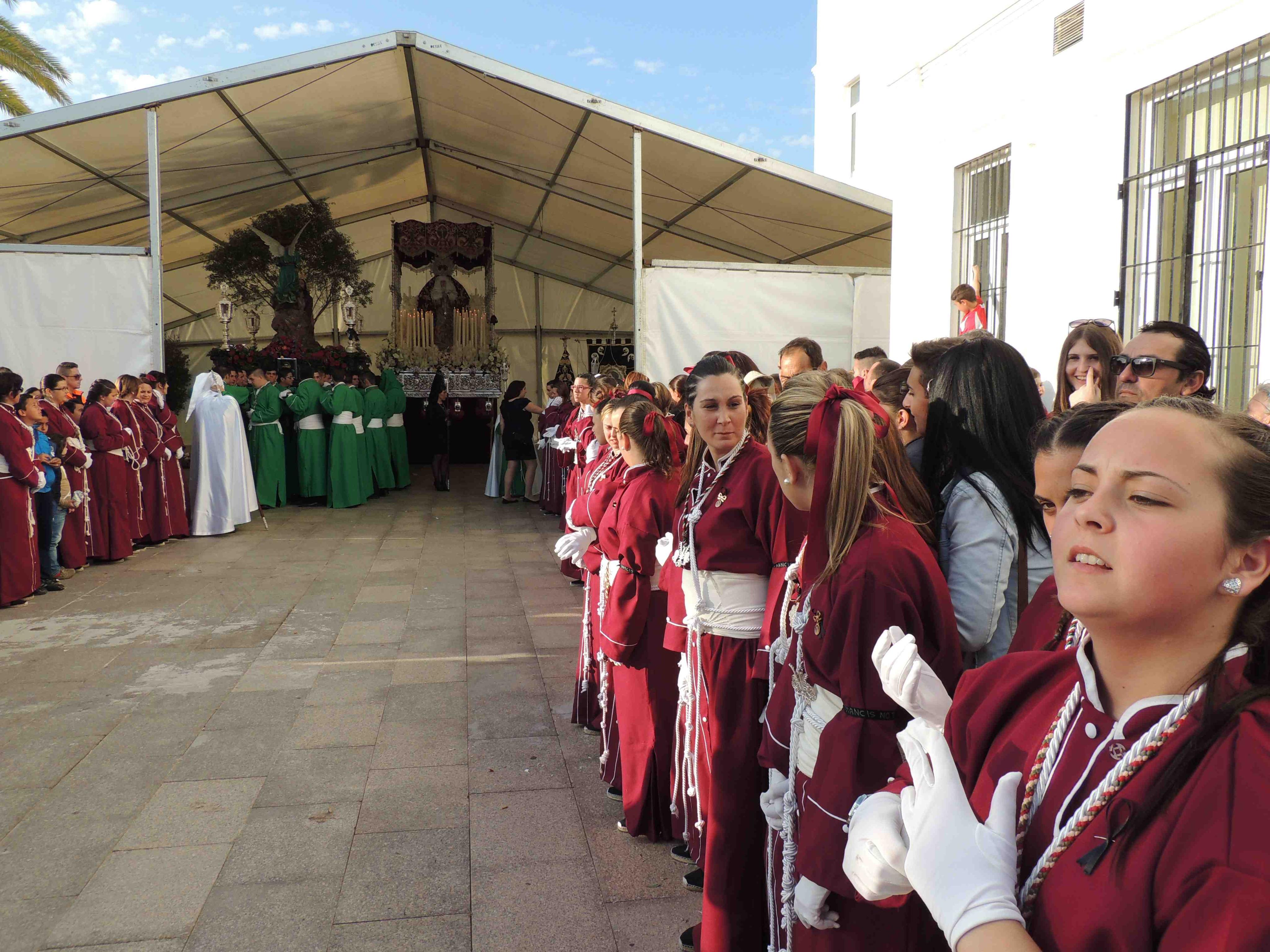 Un gran número de fieles ha asistido hoy, Lunes Santo, a la procesión de la Venerable Cofradía de Nuestro Padre Jesús en la Oración en el Huerto y María Santísima del Mayor Dolor. Los pasos del Cristo y de la Virgen Bajopalio partieron de una carpa situada junto a la Ermita de San Roque sobre las 19.30 horas. Se vivieron momentos de gran intensidad, como el Encuentro de ambas imágenes junto al colegio Carteia.