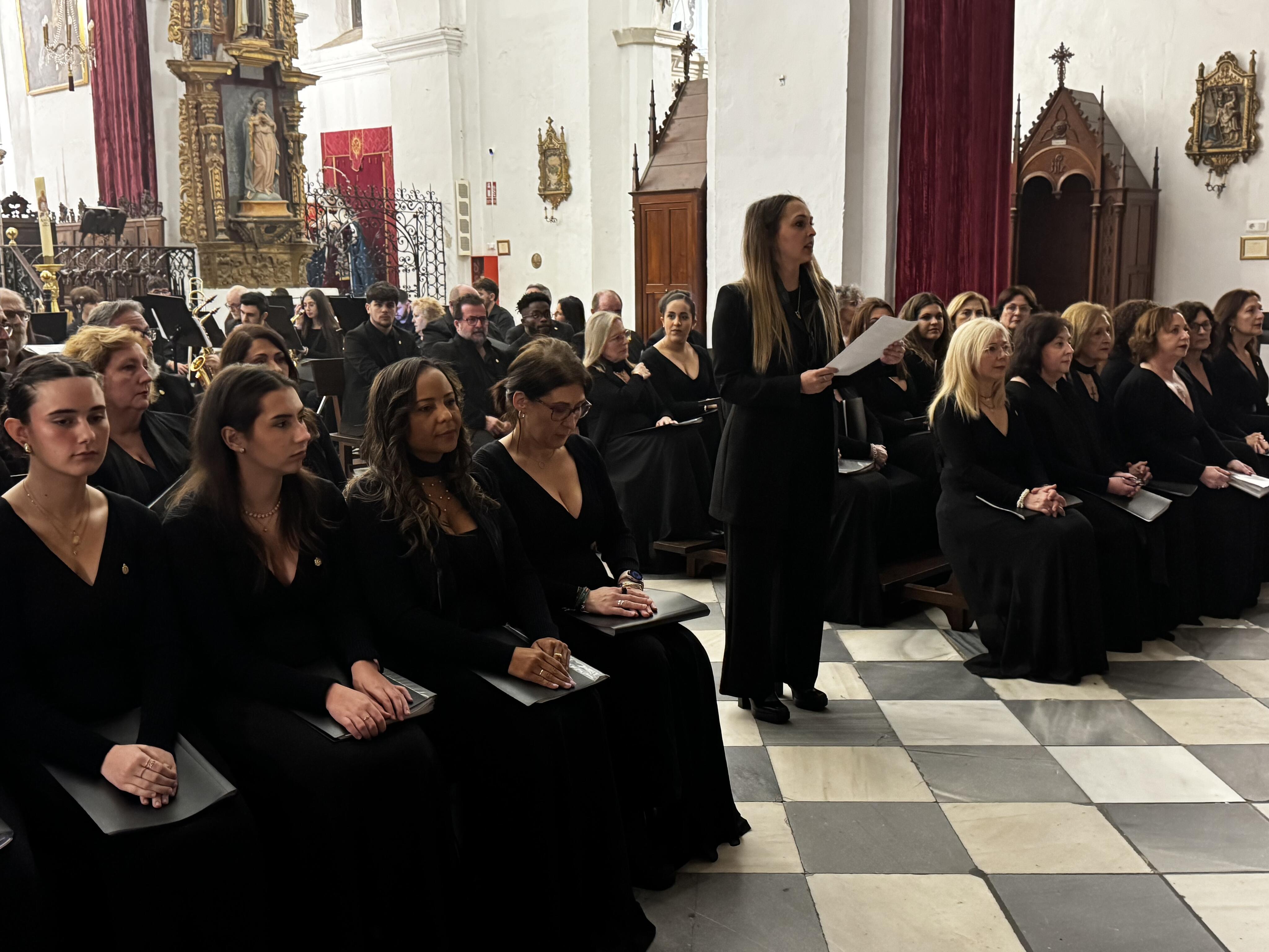Bajo la dirección magistral de José Antonio Sánchez d’Ascensao, la Banda de Música de Jimena y la Coral Portus Albus de Algeciras interpretaron diez piezas de música sacra y marchas características de la Semana Santa, acompañadas por las voces de la coral algecireña.