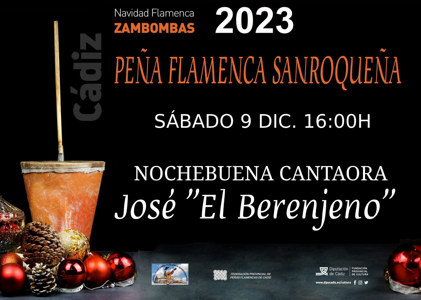 Este sábado 9 de diciembre la Peña Flamenca Sanroqueña organiza su tradicional zambomba navideña, que correrá a cargo José “el Berenjeno”. El espectáculo “Nochebuena cantaora”, de entrada libre, dará comienzo a las 16 horas.