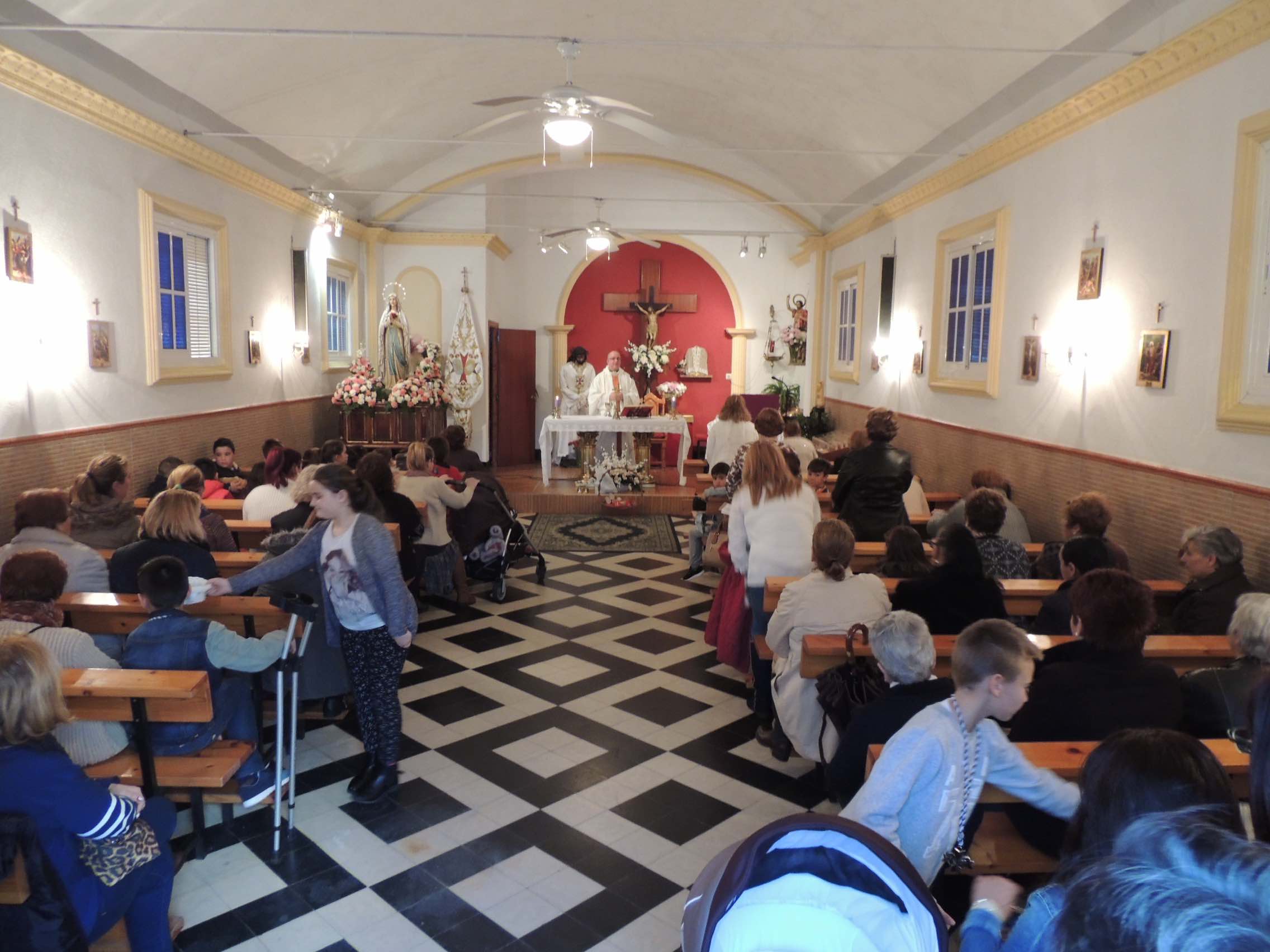 Una Misa de en la iglesia de Nuestra Señora de Lourdes fue el prólogo a la Procesión de Nuestra Señora de Lourdes, que estuvo acompañada por numerosos vecinos, por las calles de la barriada.