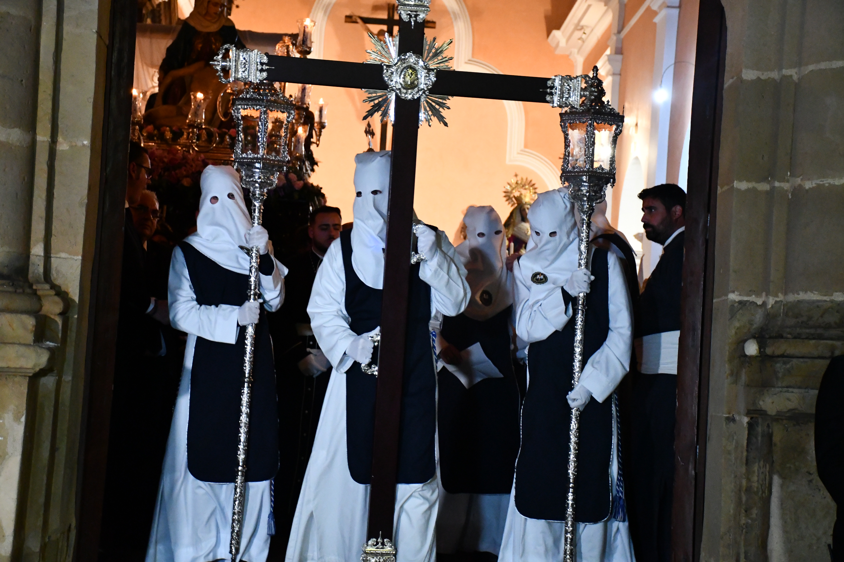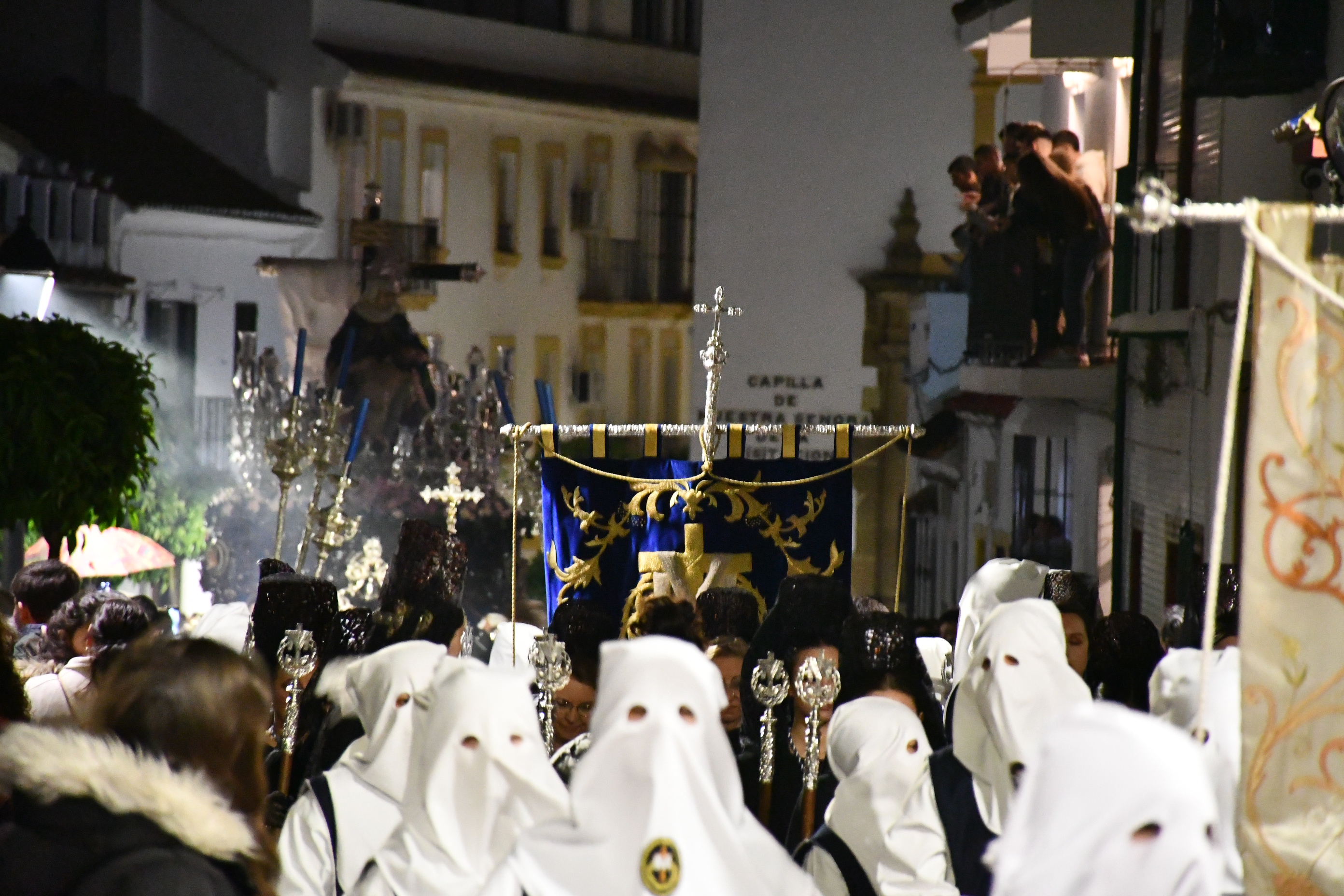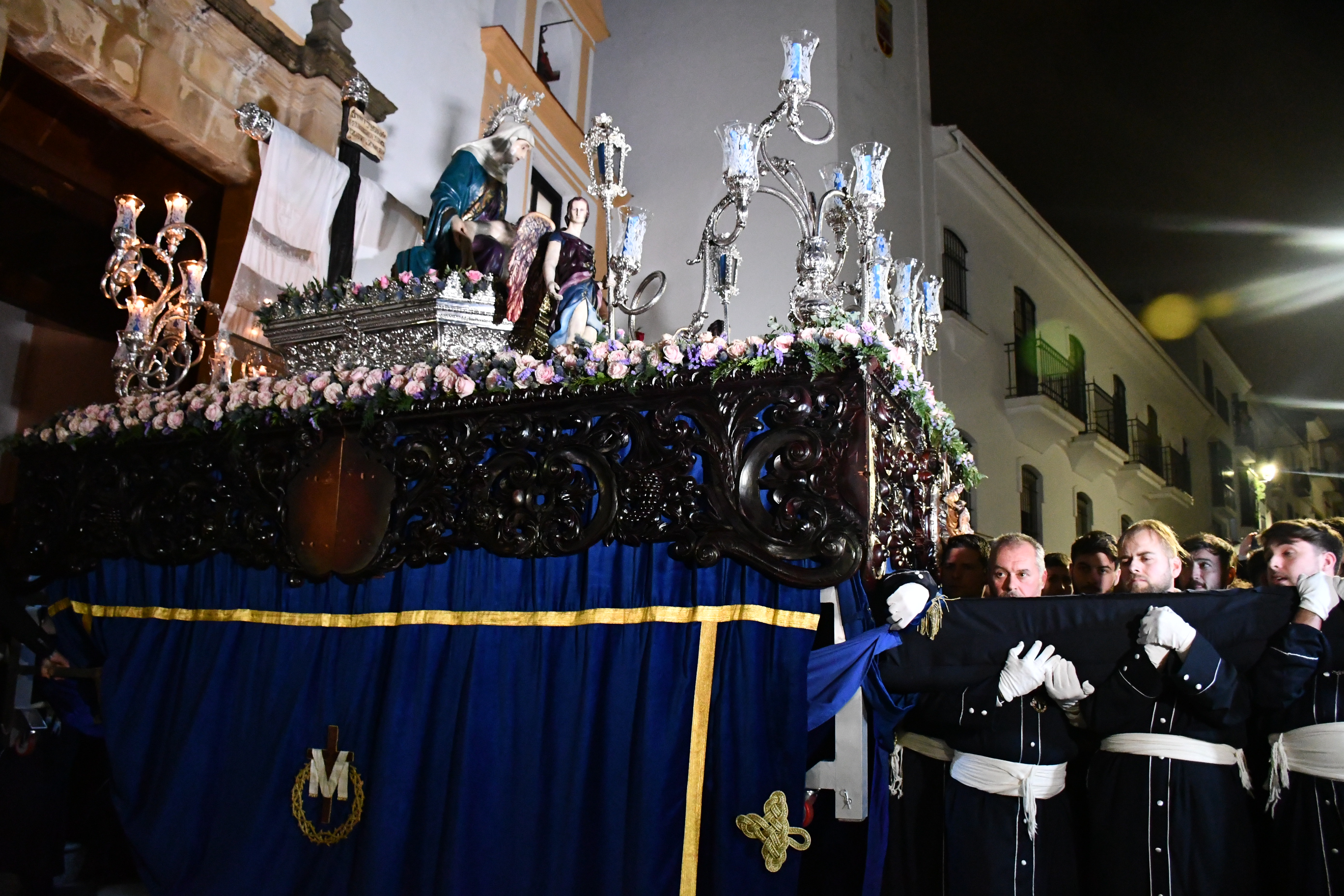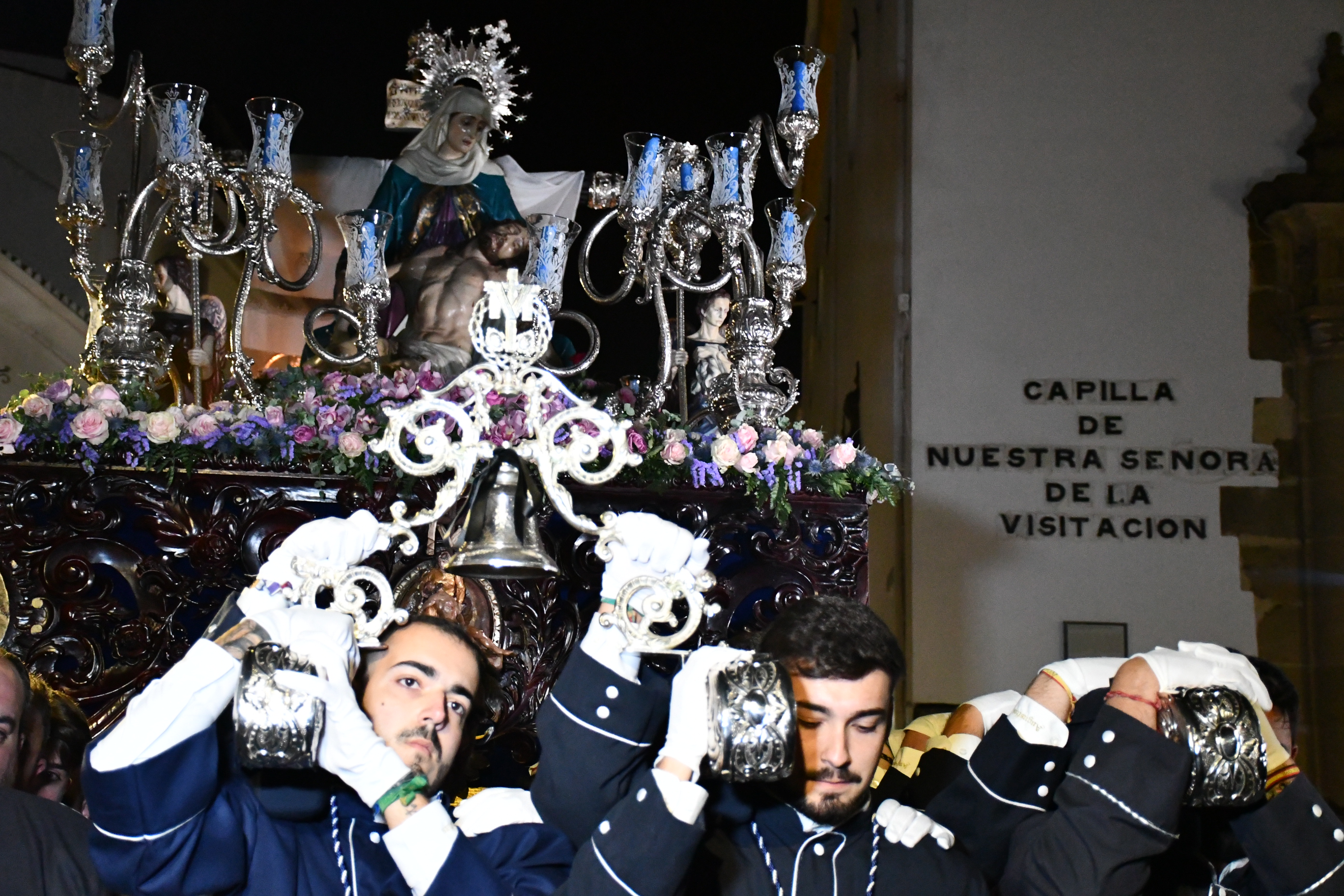La Venerable Hermandad y Cofradía de Penitencia de Nuestra Señora de las Angustias tenía prevista su salida a las 20 horas de la Capilla de Nuestra Señora de la Visitación pero la retrasó esperando que escampara un chubasco pasajero.