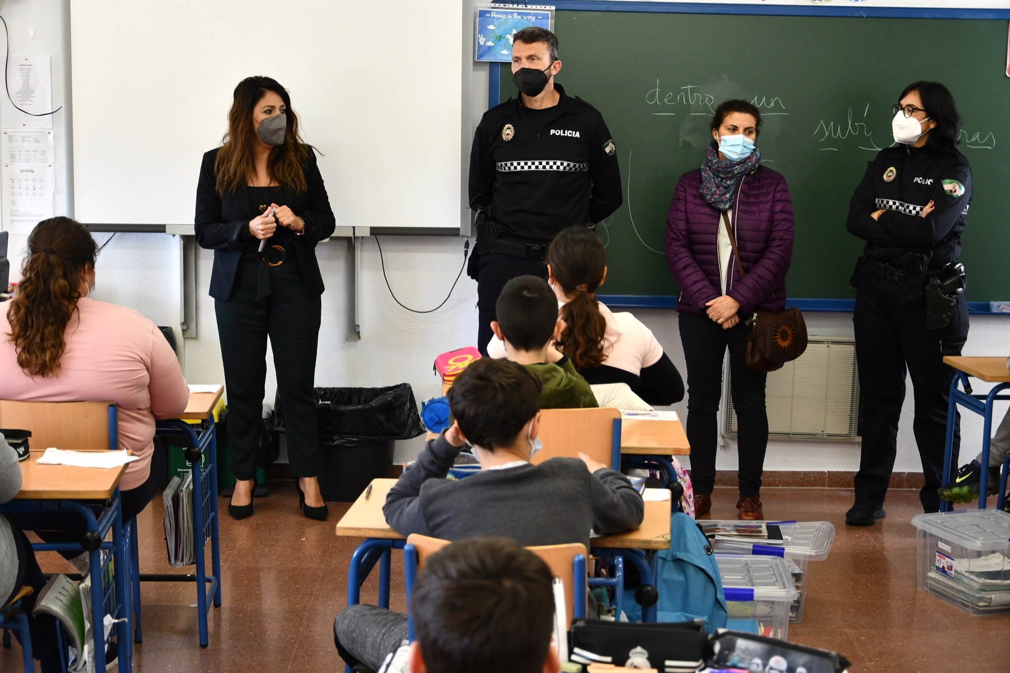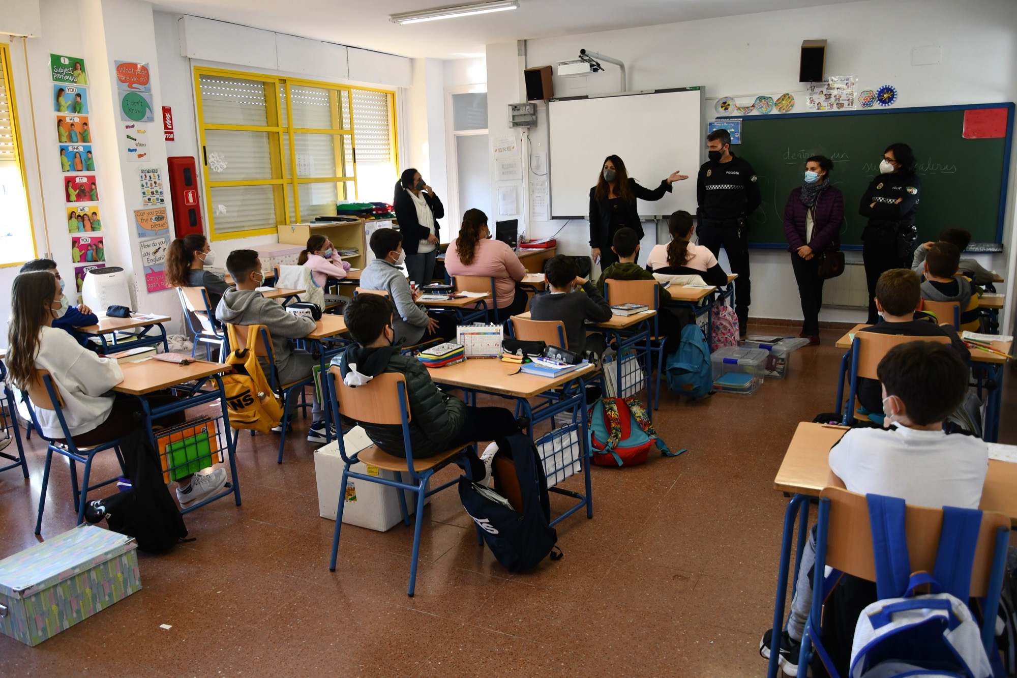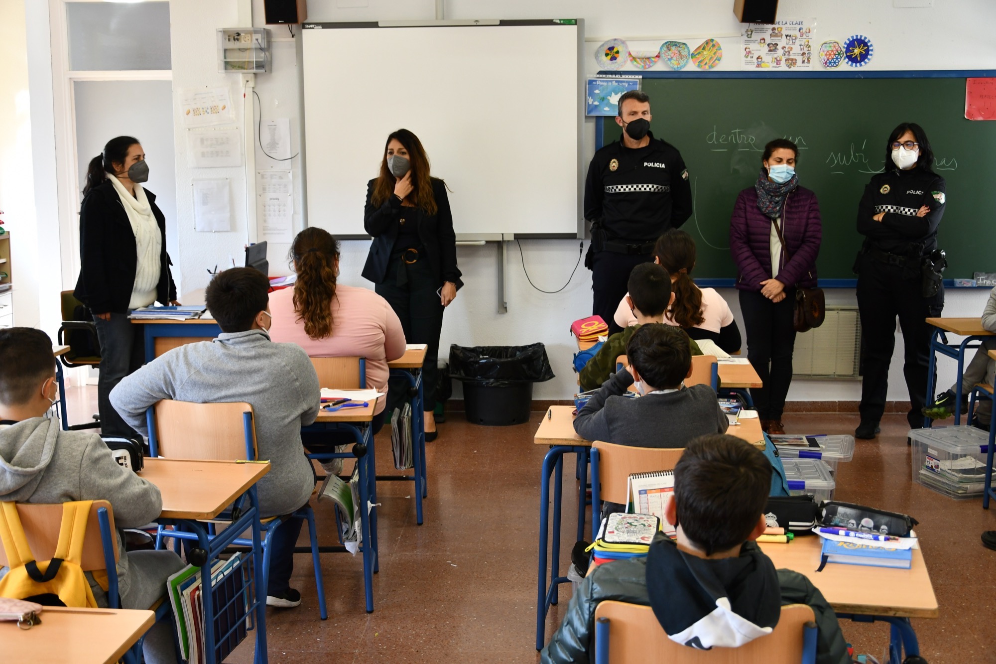 El alumnado de Sexto de Primaria del CEIP Maestro Apolinar, en San Roque Ciudad, ha recibido hoy, viernes, la visita de una técnico de la Delegación de Educación y de los dos integrantes de la unidad de Policía Social. Se trataba de la primera de las charlas sobre absentismo escolar que se van a impartir durante el presente curso 2021/22 en todos los colegios públicos del municipio, con el objetivo de concienciar a los estudiantes de la importancia de asistir a clase con regularidad.