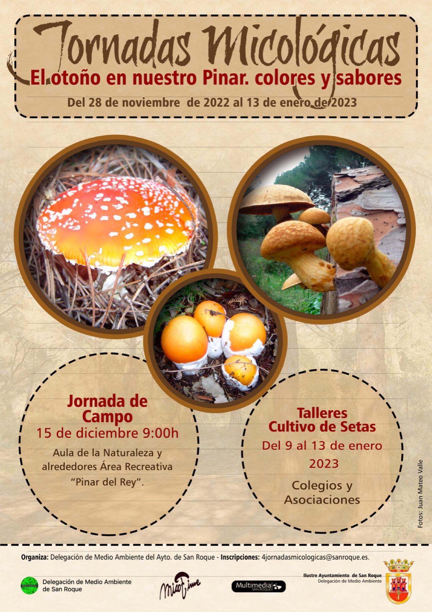 Las V Jornadas Micológicas, que cuentan con la colaboración de la empresa MicoTime y del Parque Natural “Los Alcornocales”, consistirán en charlas, recolección de ejemplares, clasificación de los mismos y una paella de setas como actividad final de convivencia.