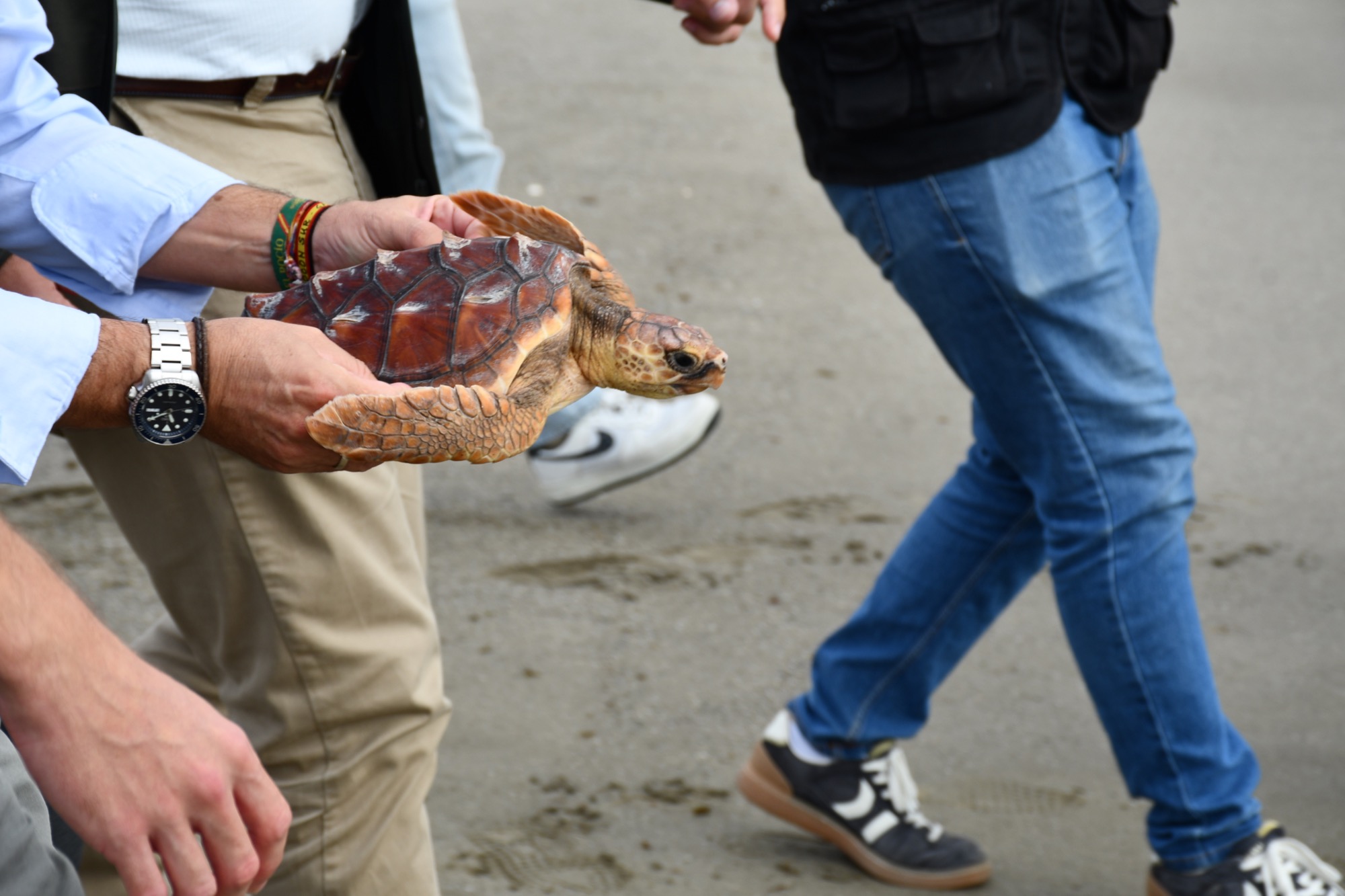 Un ejemplar de tortuga boba ha sido liberado en la mañana de este martes en Cala Sardina tras su recuperación en el Centro de Gestión Sostenible del Medio Marino Andaluz (CEGMA), situado en Algeciras. El teniente alcalde de Medio Ambiente, Juan Serván, junto a autoridades autonómicas ha asistido a la suelta de este ejemplar en la playa sanroqueña.