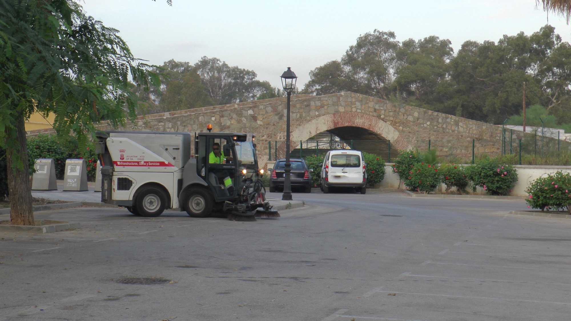 En Puente Mayorga, se ha limpiado todo el entorno del Puente Romano, donde se ha utilizado la máquina barredora.