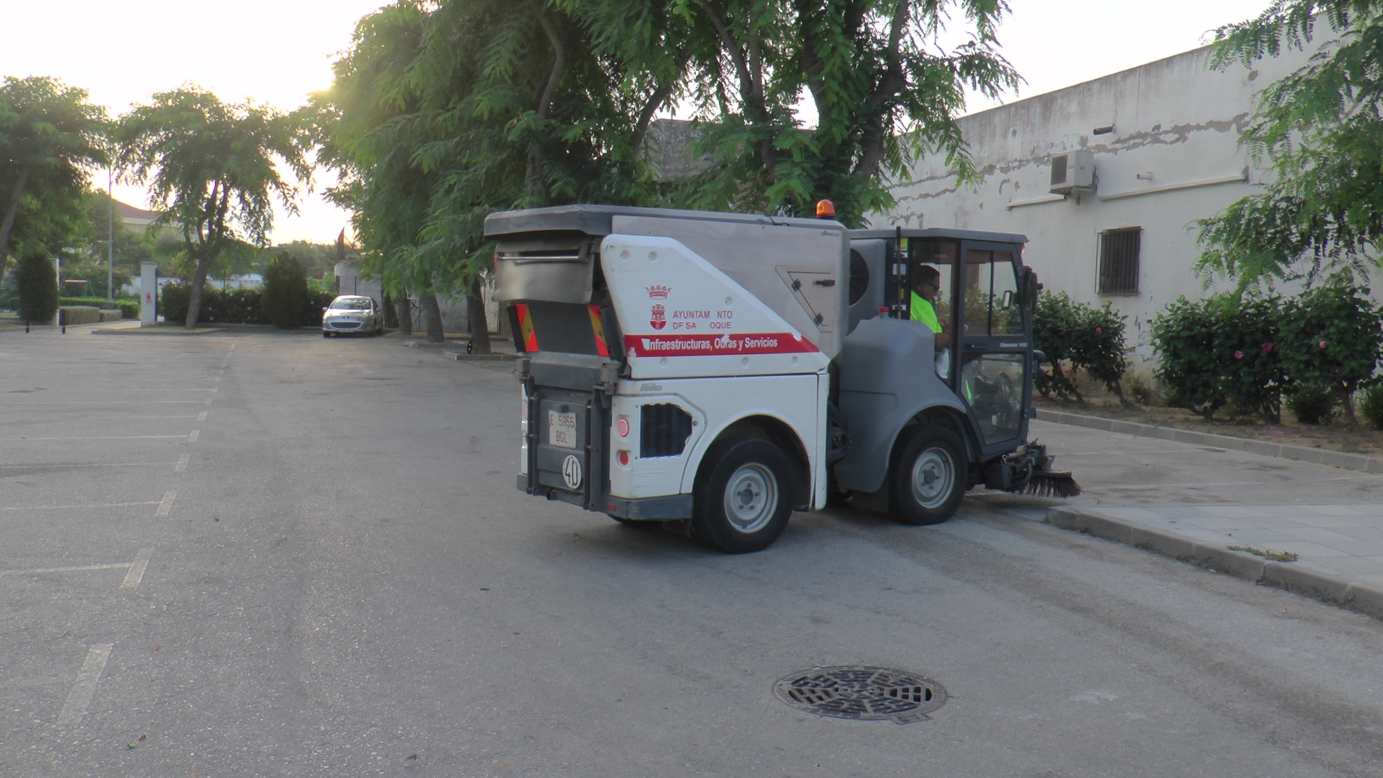 Trabajadores adscritos a la Delegación de Limpieza Viaria, que dirige el teniente de alcalde Juan Serván, han realizado limpiezas dentro del Plan Únete que hoy, jueves, han tenido lugar por la barriada de Puente Mayorga y por la parte alta del Casco Histórico de San Roque.