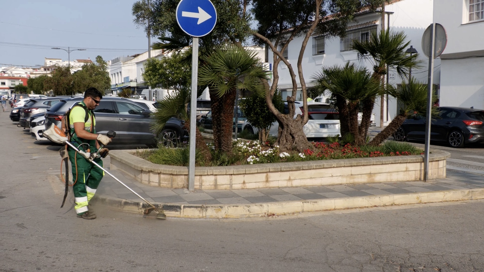 Operarios adscritos a Limpieza Viaria han realizado durante la mañana de este miércoles labores de limpieza exhaustiva por Pueblo Nuevo de Guadiaro, especialmente en la zona comercial de Sierra Bermeja.