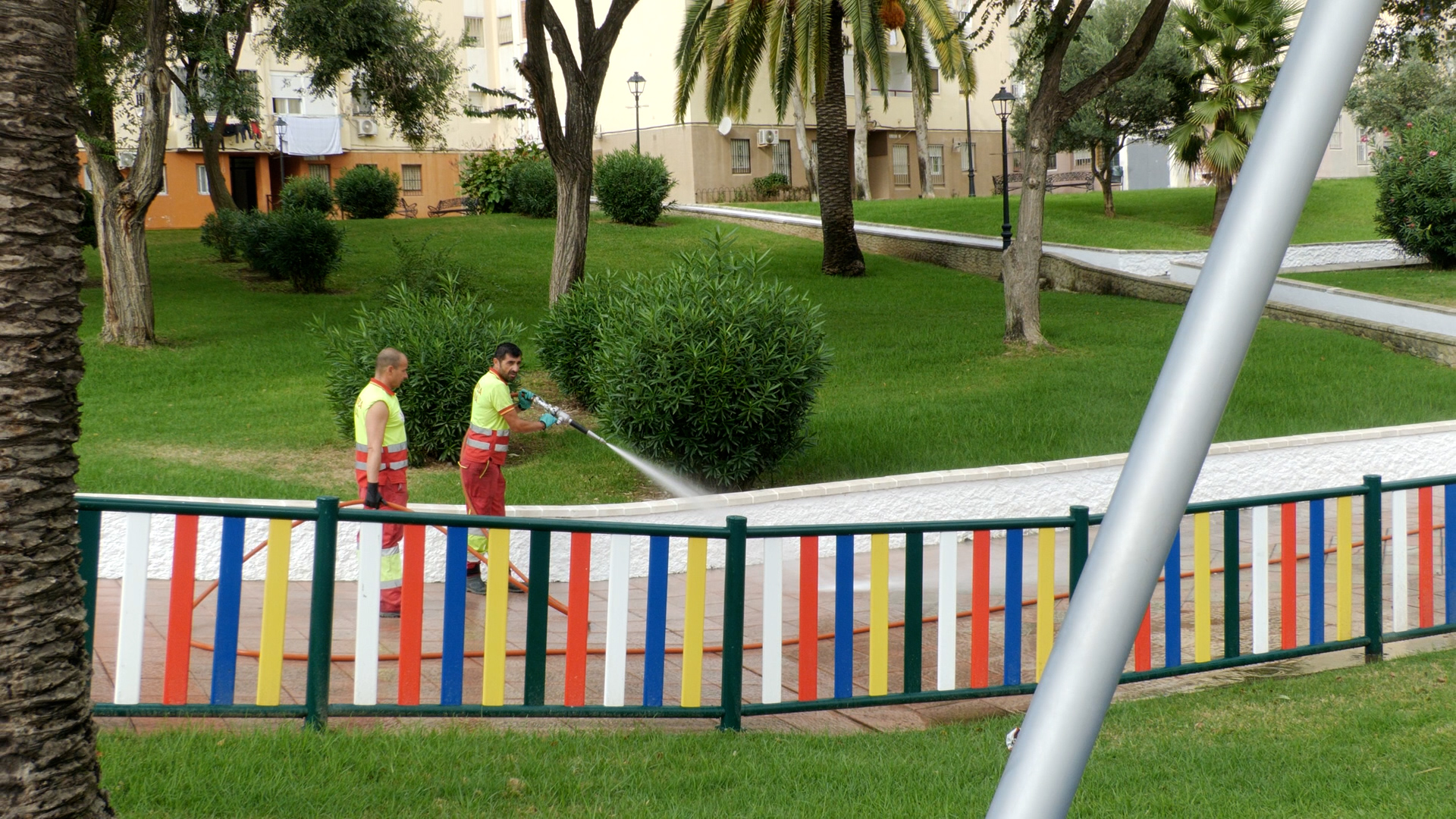 Trabajadores adscritos a Limpieza Viaria han realizado en la mañana de hoy, miércoles, una limpieza exhaustiva por la barriada de Miraflores, labores que complementan a los que se realizan a diario.