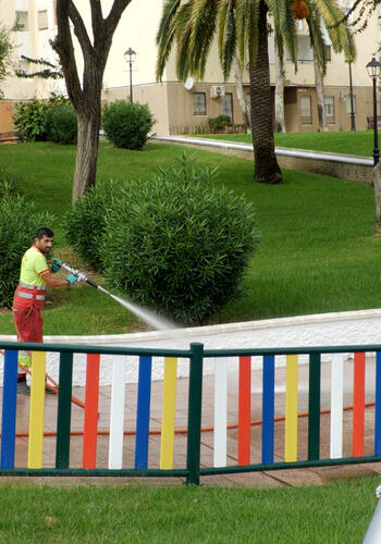 Los trabajos han consistido en el barrido mecanizado y manual, empleo de agua no potable a presión para la suciedad más incrustada, el uso de sopladora y el desbroce de mala hierba. Habitualmente durante estas limpiezas integrales, que se suelen realizar todos los miércoles, se procede a la recogida de muebles y enseres que los vecinos depositan la noche anterior.
