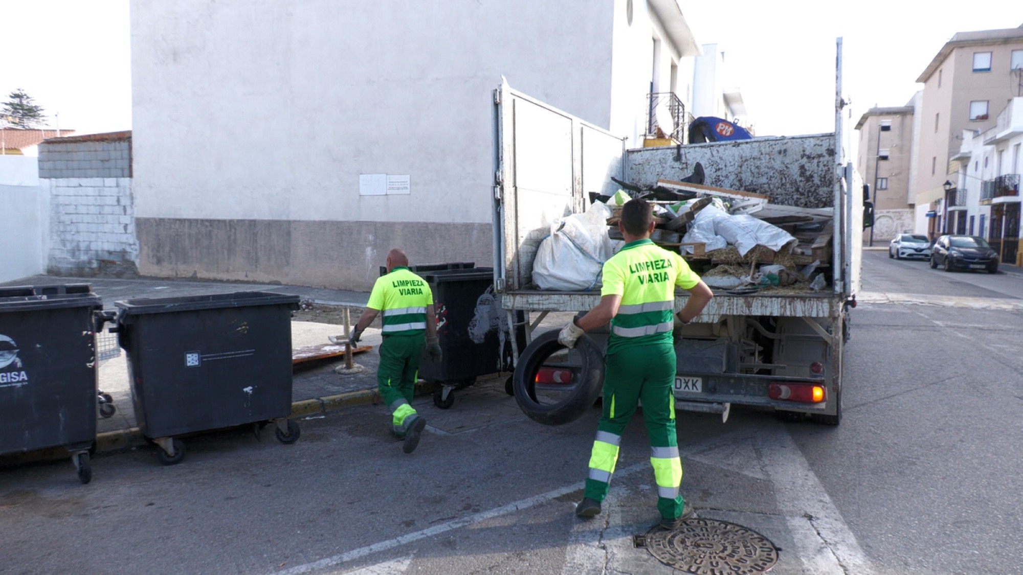 Consistió principalmente en la recogida de hojas secas de árboles, limpiezas manual y desbroce de mala hierba, mientras que otro grupo de operarios recogía muebles y enseres depositados durante la noche anterior por los vecinos.