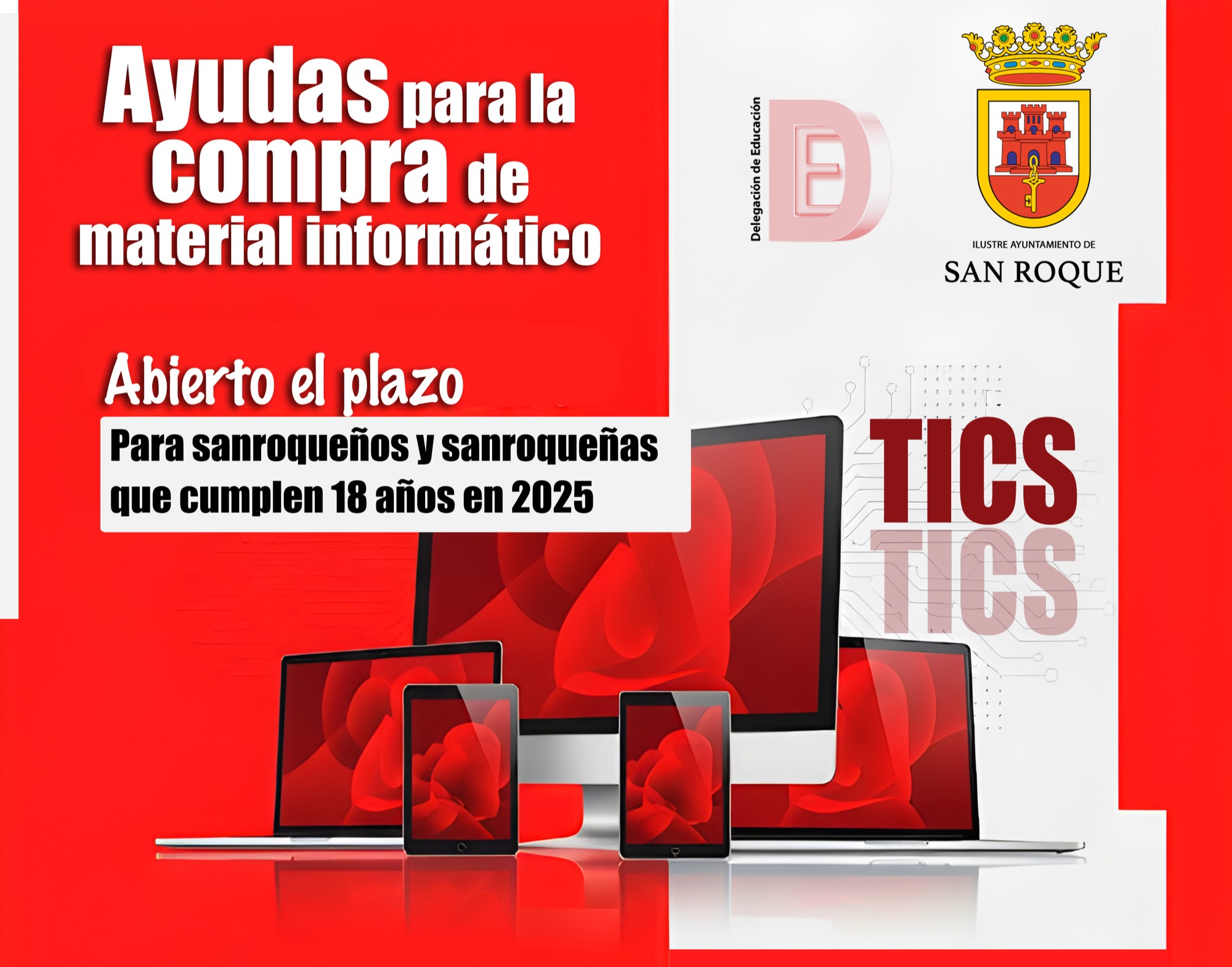 El Ayuntamiento de San Roque ha resuelto un total de 62 ayudas para el fomento entre los jóvenes del uso de las Tecnologías de la Información y la Comunicación (TIC) en el ámbito educativo y social 2025. El alcalde de San Roque, Juan Carlos Ruiz Boix, y la teniente de alcalde de Educación, Belén Jiménez, recuerdan que desde el Ayuntamiento seguirán trabajando en la misma línea para ayudar económicamente a los jóvenes que cumplan la mayoría de edad el próximo año.