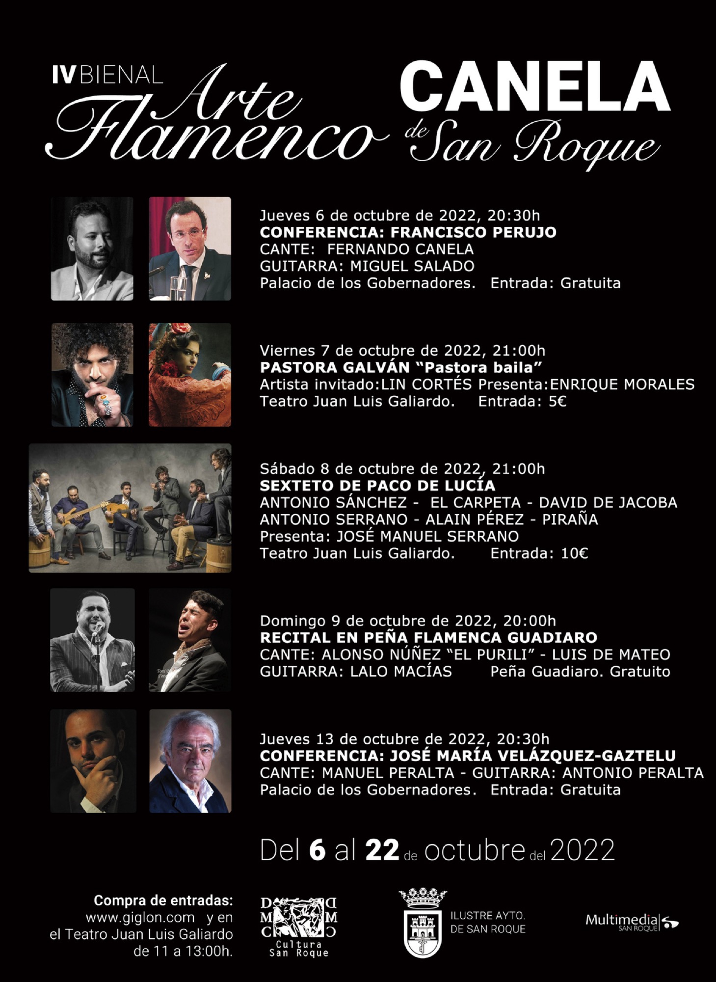 La IV Bienal de Arte Flamenco “Canela de San Roque” está organizada por la Delegación de Cultura del Ayuntamiento de San Roque, que dirige la edil Ana Ruiz. Las entradas para las actuaciones de la Bienal ya están a la venta de 11 a 13 horas en el Teatro Juan Luis Galiardo o a través de la web www.giglon.es.