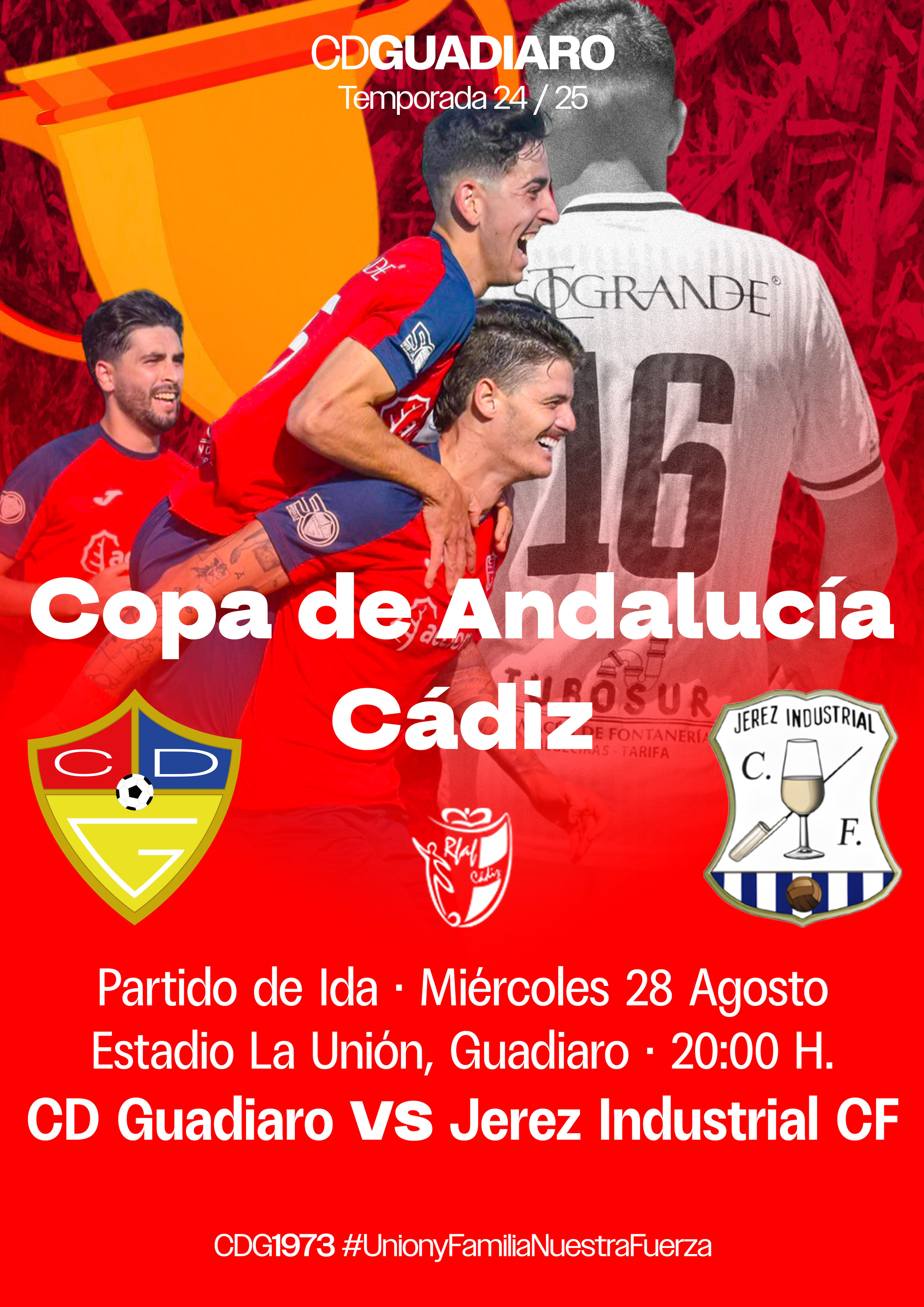 El Club Deportivo Guadiaro se mide con el Jerez Industrial Club de Fútbol en cuartos de final de la Copa de Andalucía mañana, miércoles, a las 20.00 horas en el Municipal La Unión.