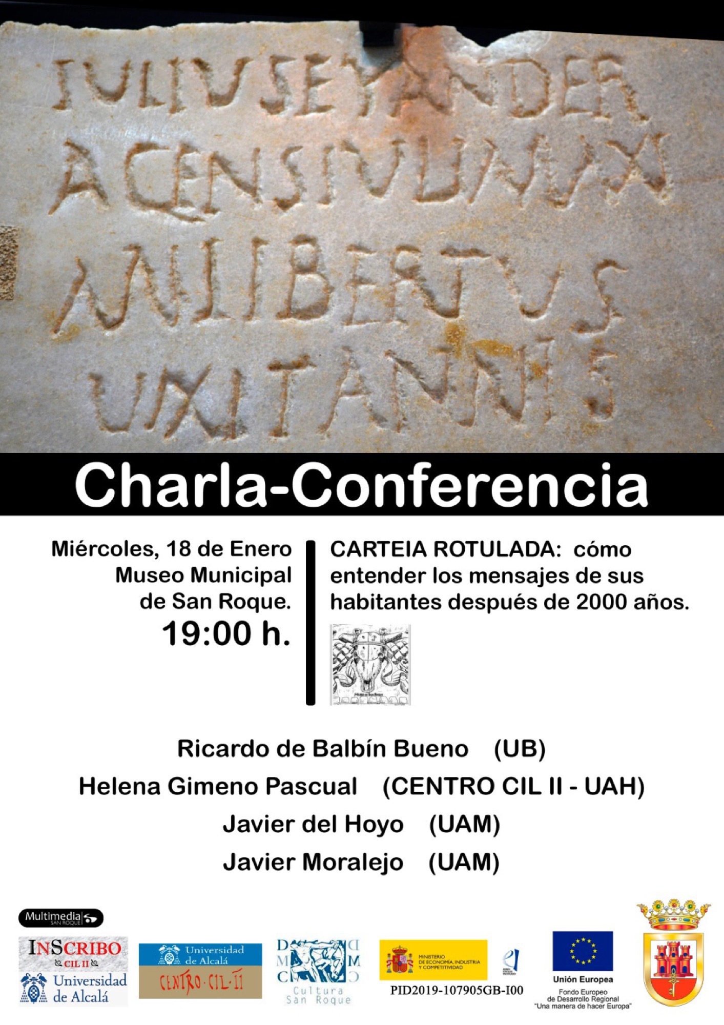 La ponencia “Carteia rotulada: cómo entender los mensajes de sus habitantes después de 2.000 años” correrá a cargo de los investigadores Ricardo de Balbín Bueno, de la Universidad Autónoma de Barcelona; Helena Gimeno Pascual, del Centro CIL II (Corpus Inscriptionum Latinarum) de la Universidad de Alcalá de Henares, Madrid (UAH); Javier del Hoyo y Javier Moralejo, ambos de la Universidad Autónoma de Madrid (UAM).