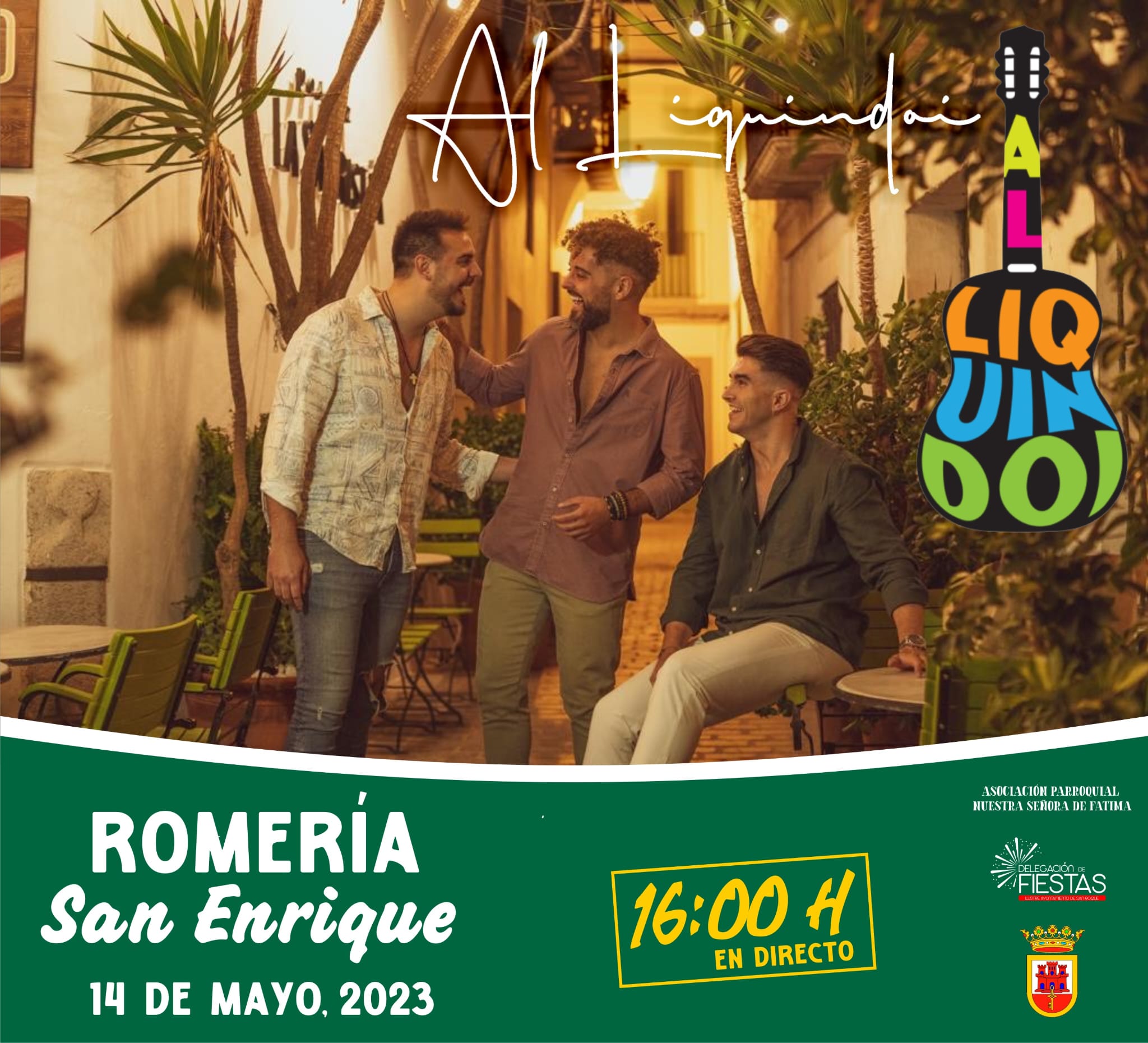 El domingo se concentra la actividad en la salida de la Virgen, desde la parroquia de San Enrique a las 10 de la mañana, tras el traslado del simpecado hasta la Iglesia una hora antes. La romería de la Virgen por el camino, acompañada de los vecinos, saldrá a las 10 de la Iglesia, para seguir por calle Los Pinos, cruza avenida San Enrique (junto a Centro Médico) hasta la Romería situada junto al río. Allí será la convivencia amenizada con música, desde las 16 horas con el grupo “Al Liquindoi”, y se tiene previsto el regreso dela Virgen sobre las 20 horas.