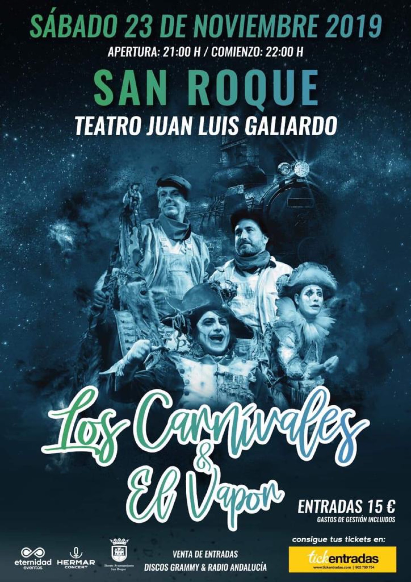 El Teatro Juan Luis Galiardo acogerá, el próximo sábado 23 a partir de las 22.00 horas, la actuación de la comparsa de Martínez Ares que interpretará las letras repertorios de dos de sus formaciones más míticas: “Los Carnívales” y “El Vapor”. El evento está organizado por Hernar Concert con la colaboración de la Delegación Municipal de Cultura, que dirige la concejal Ana Ruiz.