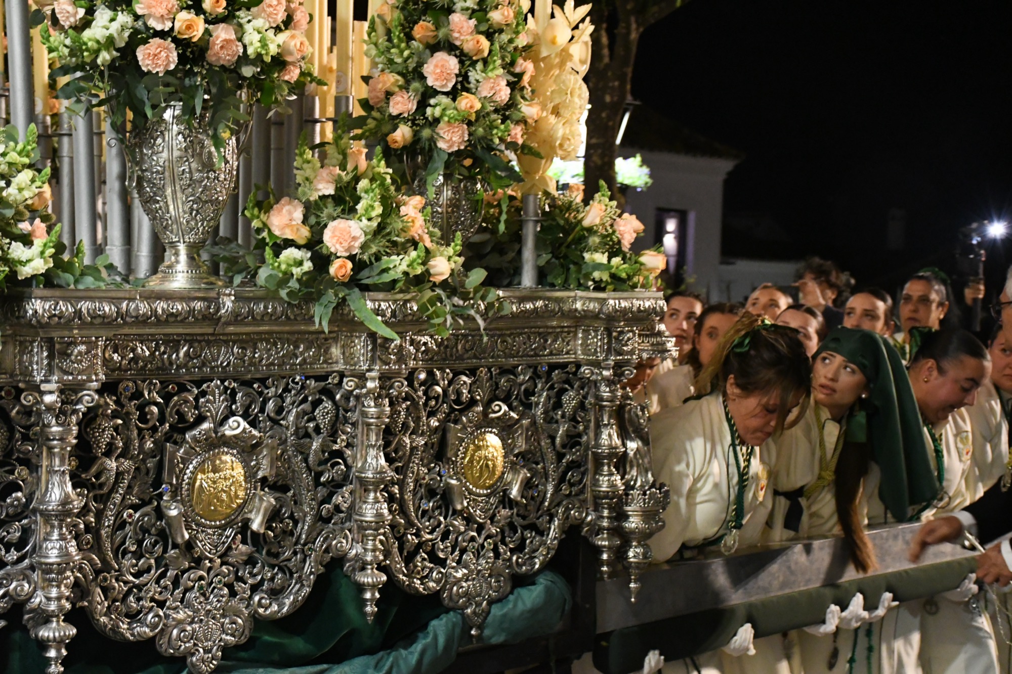 La Cristo de la Humildad y Paciencia y Nuestra Señora de la Esperanza ha salido en procesión esta noche de Martes Santo desde la Parroquia Santa María la Coronada. Pese a lo desapacible de la tarde, con alguna racha fuerte de viento y chubascos intermitentes, las condiciones meteorológicas respetaron la salida procesional, que fue conforme a lo previsto aunque con un leve retraso.
