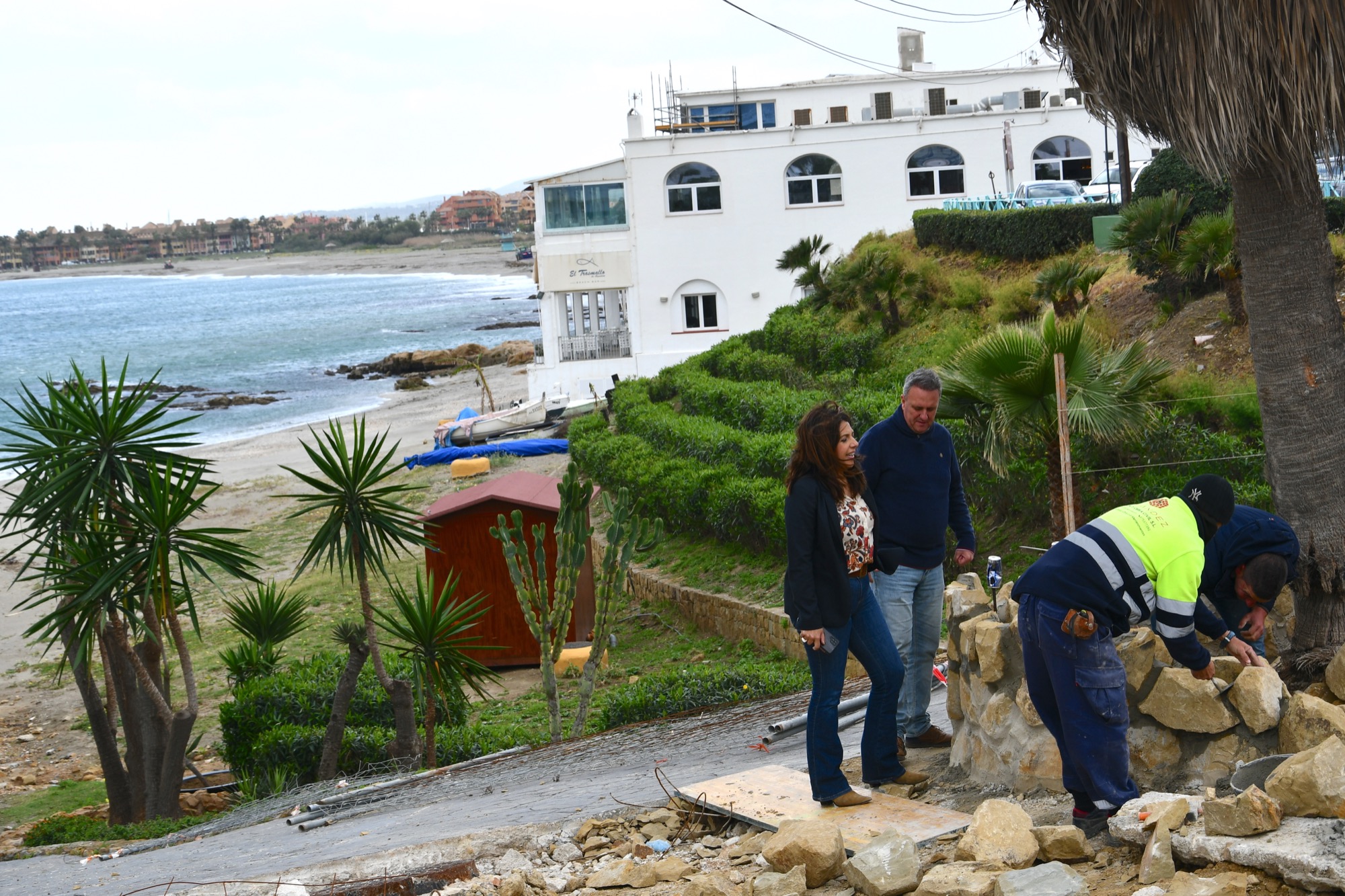 Obras y Servicios está acometiendo una obra para mejorar el entorno que comunica la parada de autobús que se encuentra en la zona de las torres, el acceso a la playa y el nuevo edificio multiusos de Torreguadiaro, con el fin primordial de eliminar barreras arquitectónicas. La teniente de alcalde responsable de este departamento, Belén Jiménez, ha inspeccionado los trabajos junto a un técnico municipal.