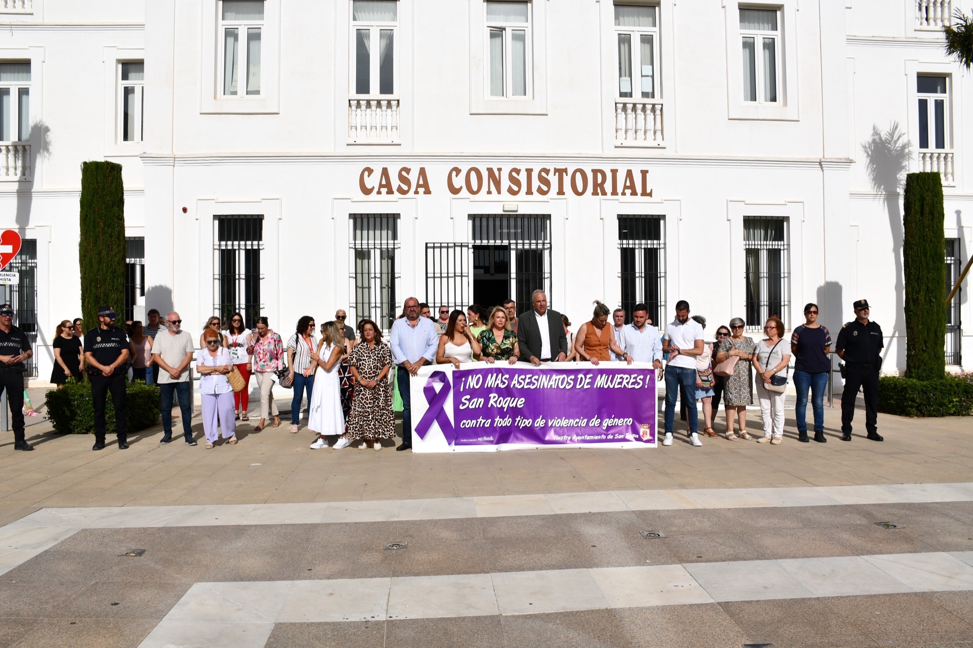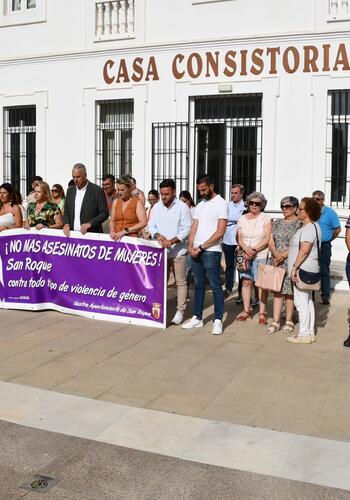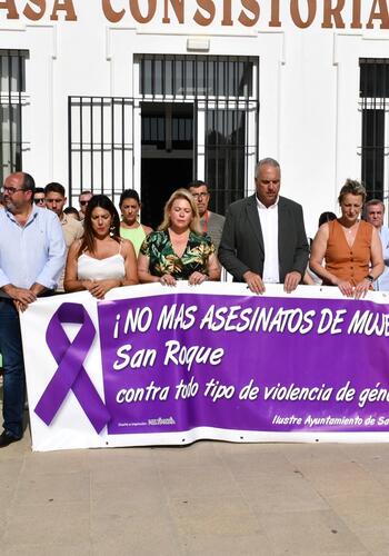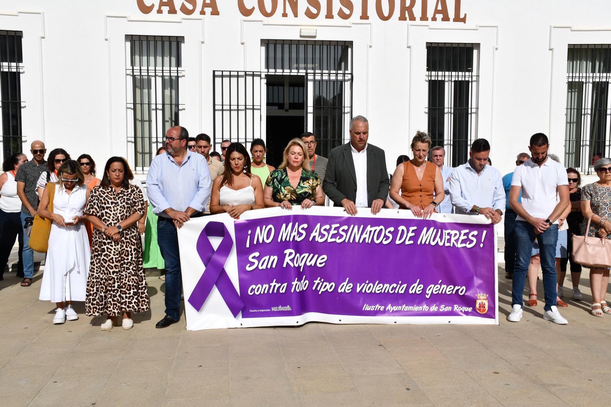 Autoridades municipales, trabajadores del Ayuntamiento de San Roque y otras personas a título particular se han concentrado esta mañana contra la violencia machista, como ocurre cada primer viernes de mes. En esta ocasión, se trataba de mostrar la repulsa ciudadana por los once asesinatos producidos en España en junio pasado, que ha sido calificado por el alcalde como “un mes terrible”.