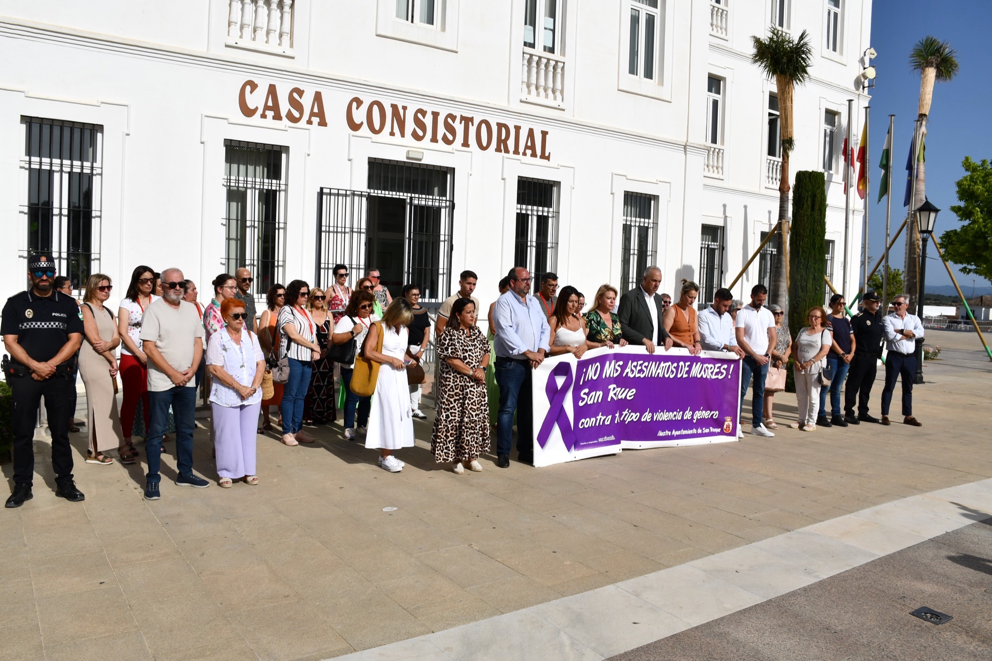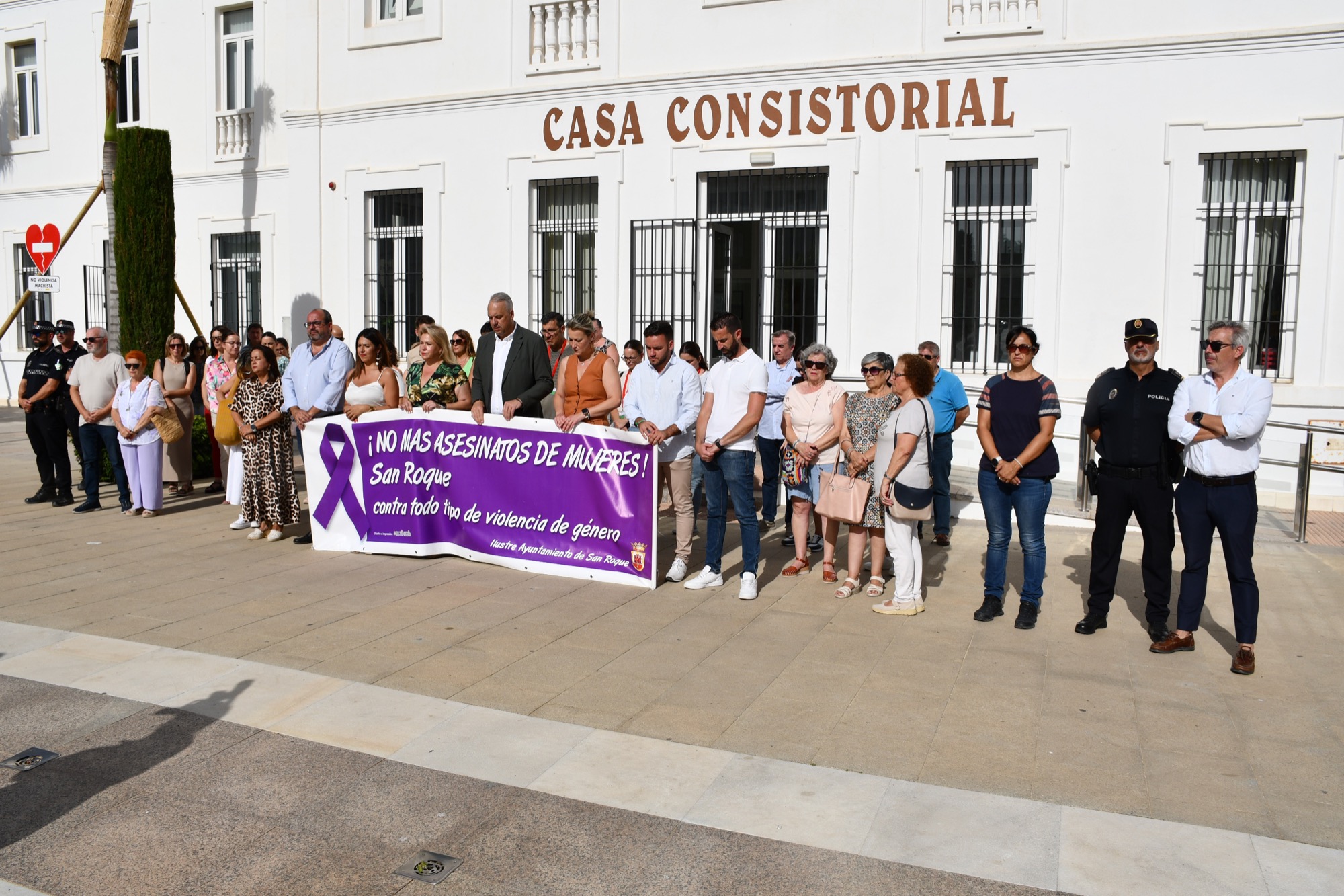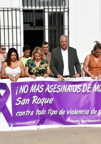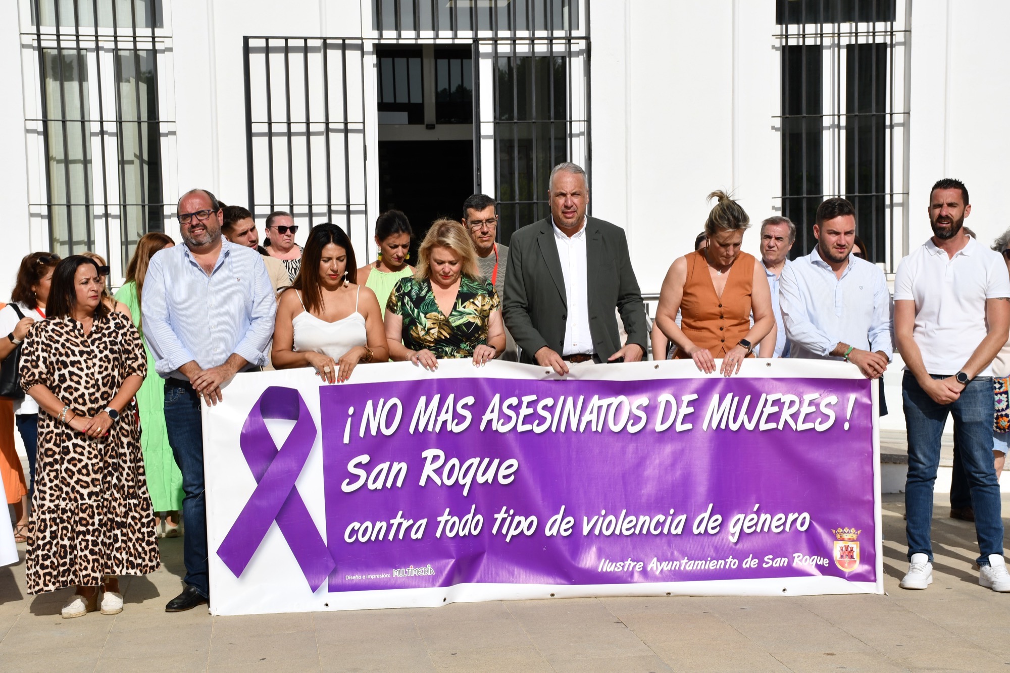 Autoridades municipales, trabajadores del Ayuntamiento de San Roque y otras personas a título particular se han concentrado esta mañana contra la violencia machista, como ocurre cada primer viernes de mes. En esta ocasión, se trataba de mostrar la repulsa ciudadana por los once asesinatos producidos en España en junio pasado, que ha sido calificado por el alcalde como “un mes terrible”.