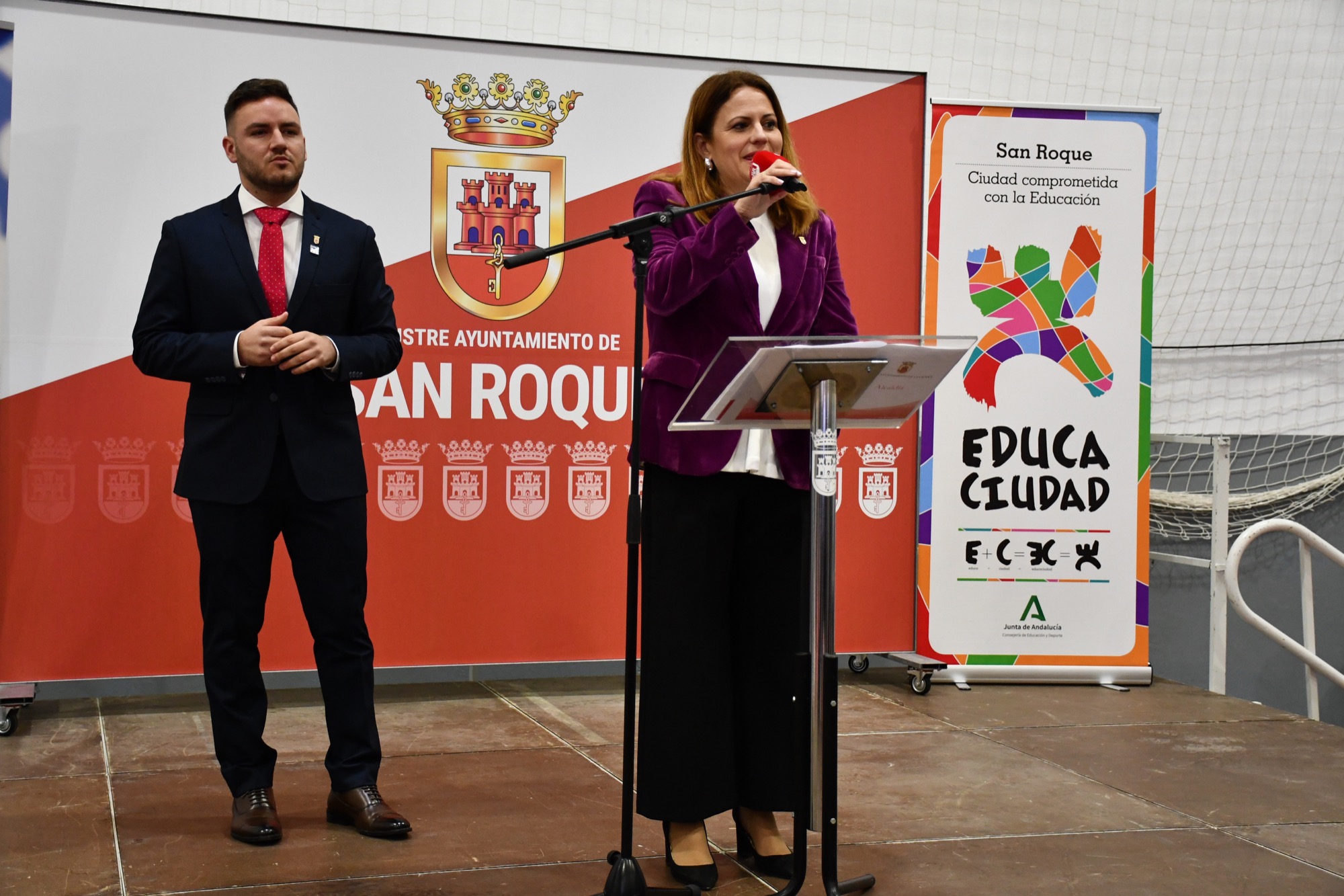La teniente de alcalde de Educación, Mónica Córdoba, y el concejal de Empleo, Fernando Vega, han sido los encargados de inaugurar en la mañana de este miércoles el II Salón de Formación y Empleo “Ciudad de San Roque”, en un acto en el que se ha puesto de manifiesto la relevancia de una iniciativa que ya es un ejemplo a nivel provincial. Se espera que, a lo largo de los dos días de salón, pasen por él más de 1.500 estudiantes de toda la comarca, así como numerosas personas en busca de empleo.