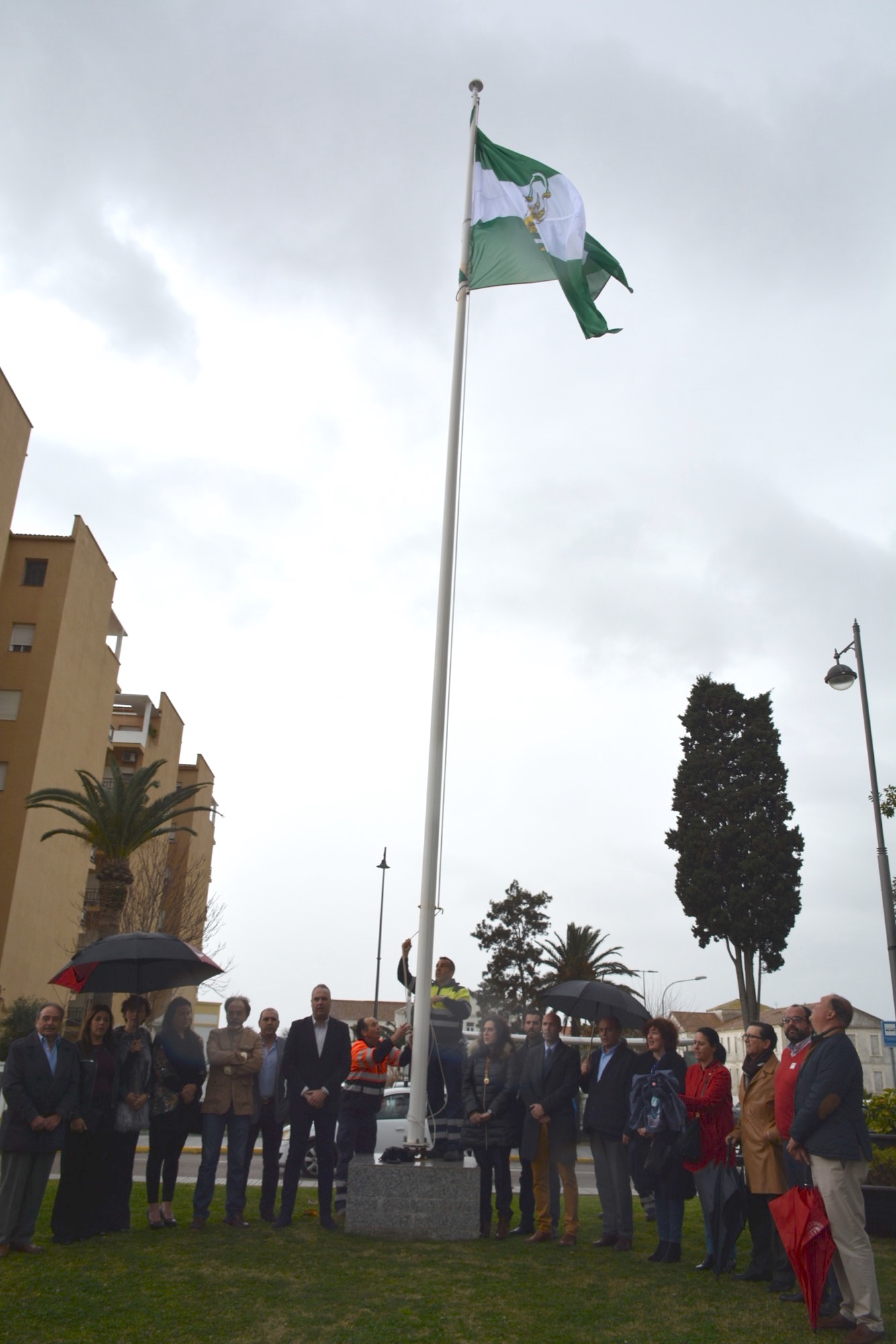 Los actos continuaron en la Alameda Alfonso XI. El alcalde y la mayoría de los ediles de la Corporación procedieron al izado de la bandera de Andalucía en el mástil situado junto al monumento del Tercer Centenario de la Ciudad, mientras Jorge Bolaño interpretaba el himno andaluz, con el piano de Ramón Díaz Fernández y la guitarra de José María Jiménez.