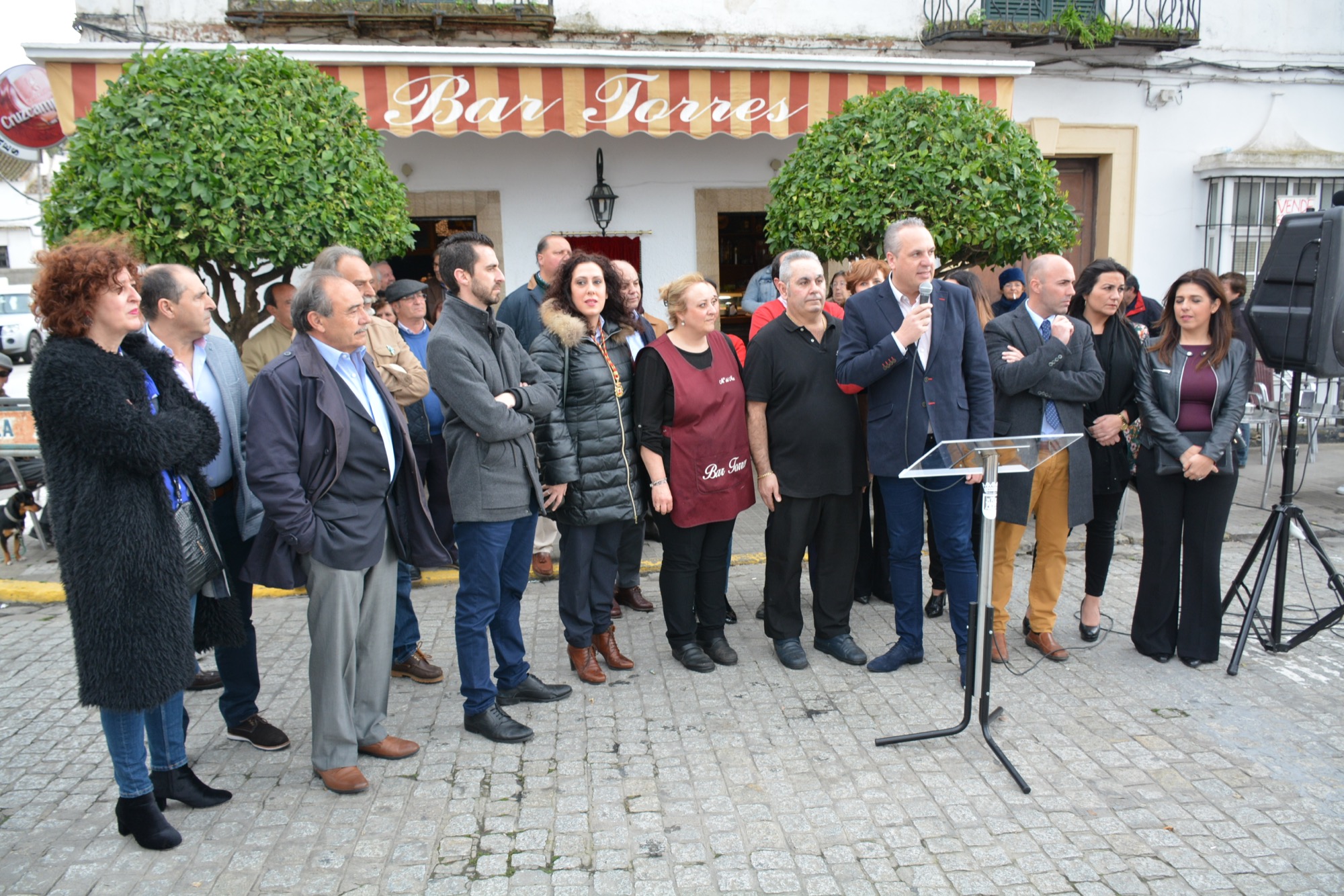 A continuación, la comitiva se desplazó a la Plaza de Andalucía, y más concretamente a la puerta del Bar Torres, donde se descubrió una placa en homenaje a este mítico establecimiento. María del Mar, la hija de José Torres García, quien dio nombre al bar cuando compró el traspaso en 1946, fue la encargada de descubrir la placa, si bien previamente su marido, Paco, agradeció a los sanroqueños haberle acogido con cariño desde que llegó en los años 90, y dijo que todo el que entraba en el establecimiento lo hacía como cliente y salía como amigo.