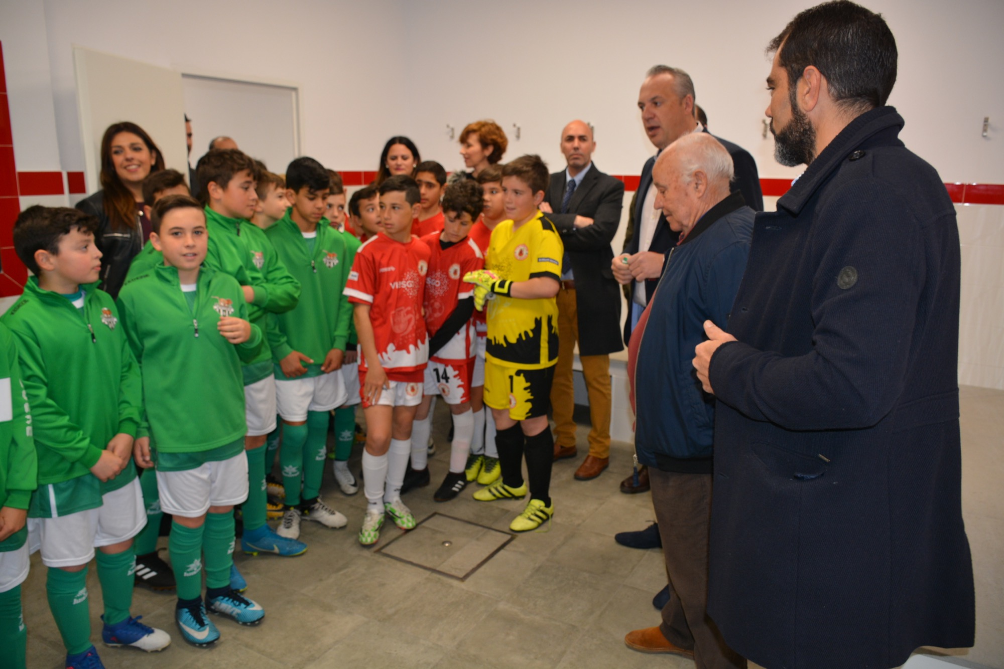 “Hace cuatro años -añadió Ruiz Boix- le dimos el nombre de Vicente Blanca, una persona que ha dedicado toda su vida al deporte base y quien queriamos que hoy estuviese también en este acto. Ahora -dirigiéndose a los pequeños- os pido un compromiso de cuidado para que el nuevo césped y los vestuarios tengan vida útil de otros diez o doce años”. Tras visitar las nuevas instalaciones, se procedió a un partido amistoso entre los alevines del CD San Roque y del CD Olivillos 87, cuyo saque de honor correspondió a Vicente Blanca.