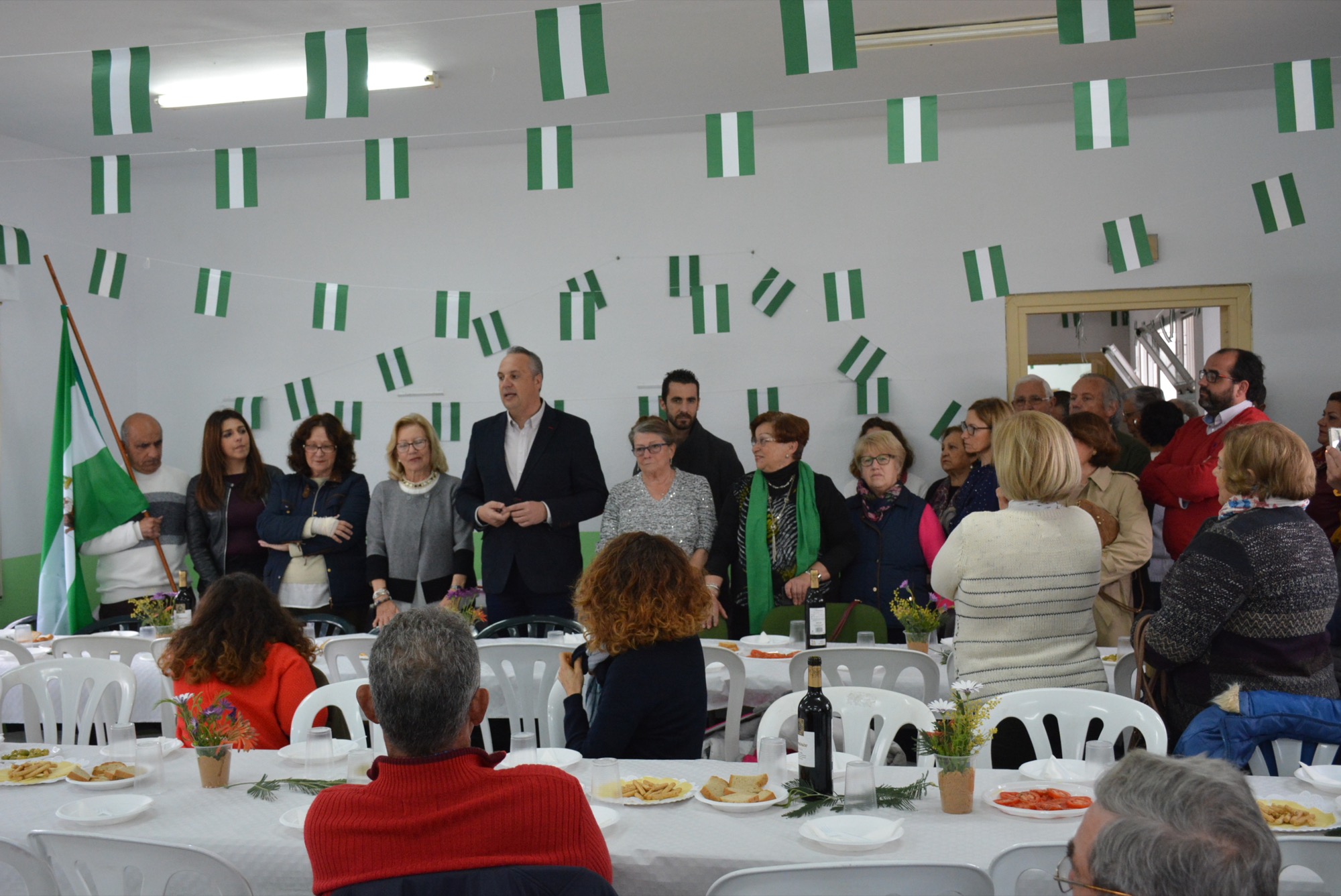 A continuación, el alcalde se desplazó a Torreguadiaro, donde la Asociación de Mujeres La Charca celebró su tradicional convivencia por el Día de Andalucía, que tuvo lugar en la antigua escuela de la barriada. El primer edil, junto a otros miembros del Equipo de Gobierno, saludó a los presentes y juntos cantaron el himno de Andalucía.