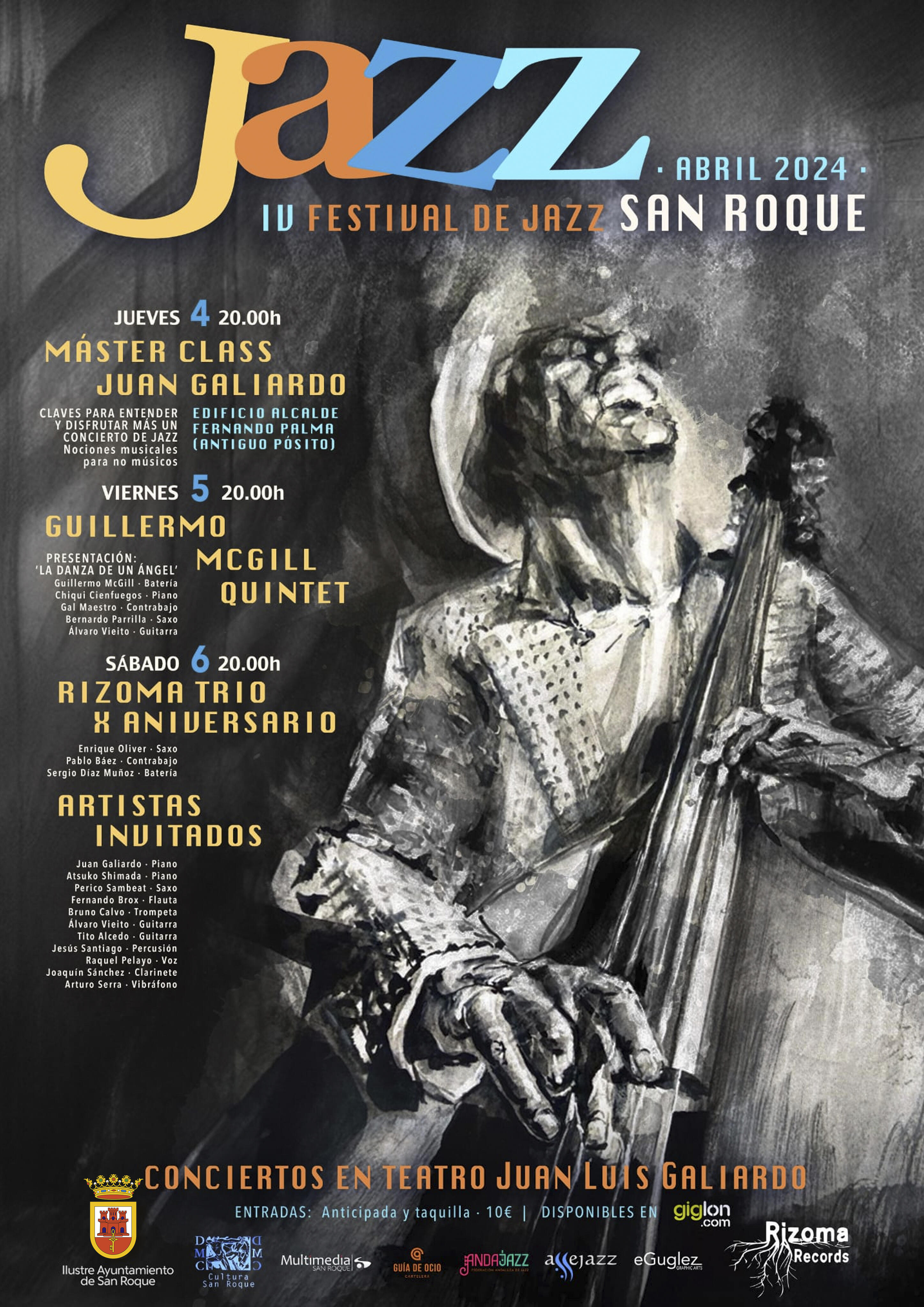 El IV Festival de Jazz Ciudad de San Roque es una iniciativa de la Delegación de Cultura que dirige la teniente de alcalde Ana Ruiz, junto con Rizoma Records. Este viernes, a las 20.00 horas, el Teatro Juan Luis Galiardo cogerá la presentación de “La danza de un ángel” con Guillermo McGill (batería), Chiqui Cienfuegos (piano), Gal Maestro (contrabajo), Bernardo Parrilla (saxo) y Álvaro Vieito (guitarra).