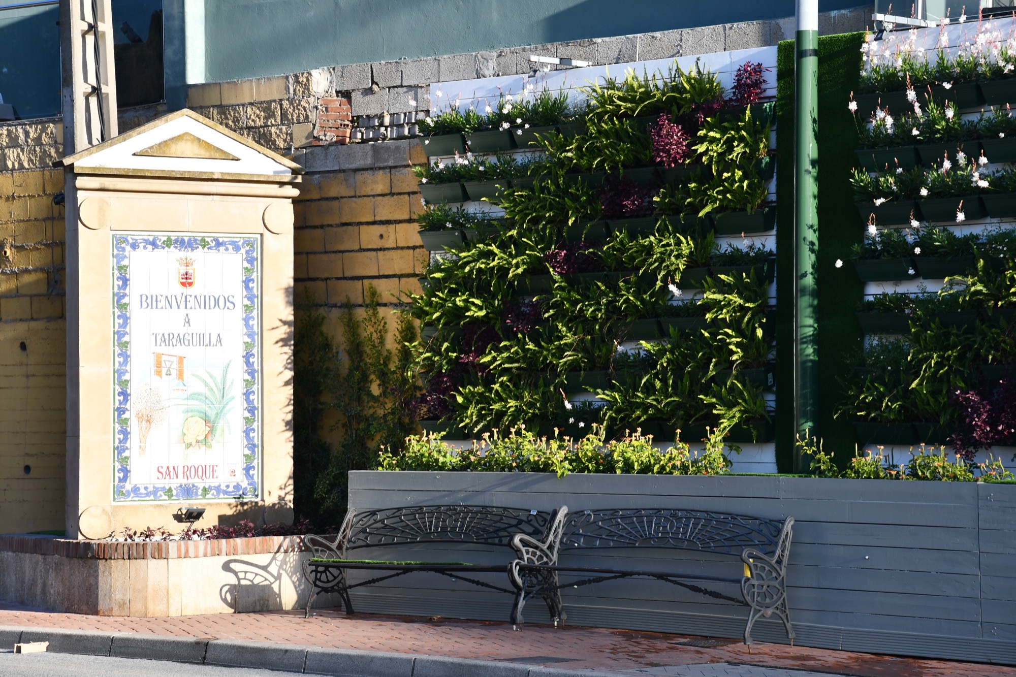 La entrada a Taraguilla desde la A7 ha experimentado una gran mejora estética debido a los trabajos realizados desde el Ayuntamiento de San Roque. Por un lado, se ha rehabilitado una glorieta, en la que se ha plantado un olivo centenario, y además se ha instalado un jardín vertical en el muro situado junto al monolito que da la bienvenida a la barriada.