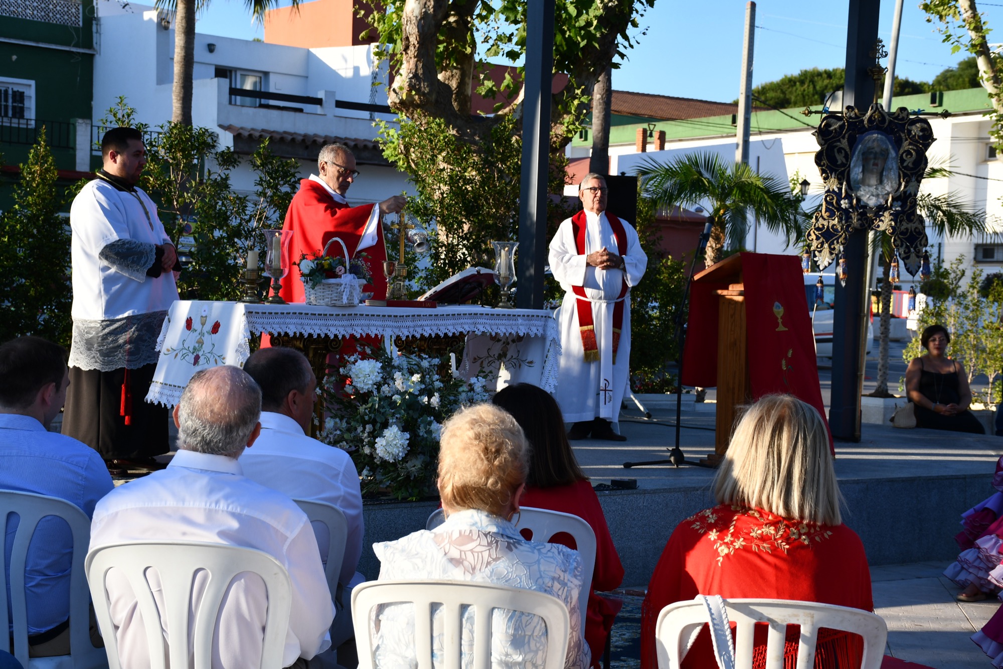 En cuanto a la misa, que ofició el padre Uriel Antonio Rodríguez Sierra, contó con la música del Coro Ciudad de San Roque, y se contó con la presencia de las cortes de honor infantil y juvenil de la Feria de Taraguilla, así como de los tenientes de alcalde delegado de Estación, Taraguilla y Miraflores, Juan Serván, y de Fiestas y Tradiciones, María del Mar Collado; y el edil Alfonso Valdivia, además de otros ediles.